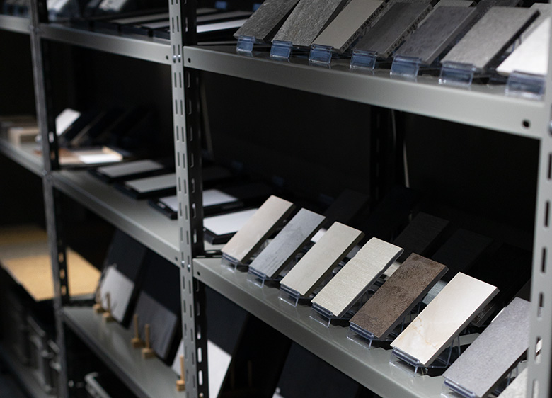 新潟オフィスに併設されたショールーム「材室」では、県内ではなかなか見られないような国産の木材、壁やタイルといった内装材を展示しています。