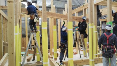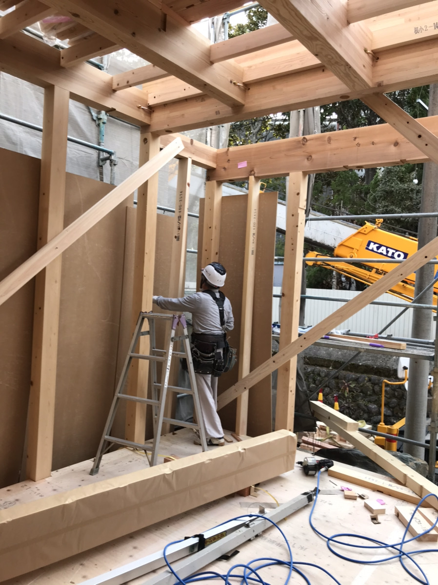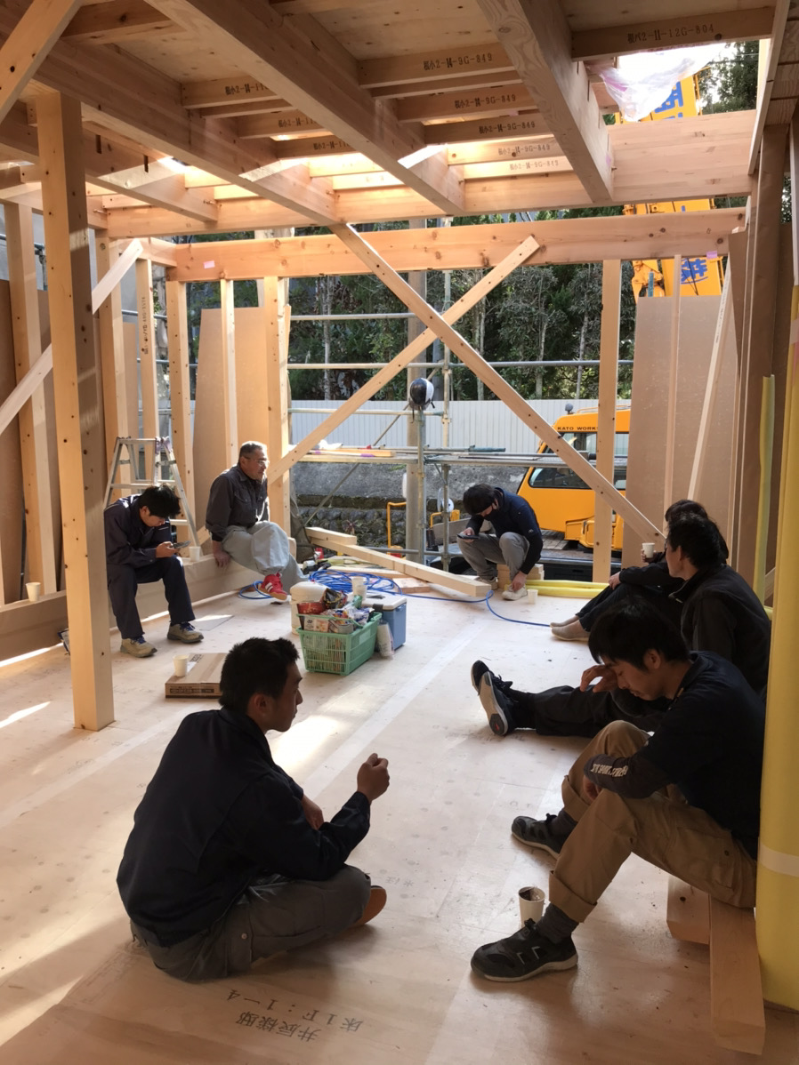 今回もそうですが、いつも大工さんの指示通り正確な位置に降ろすクレーンのオペレーターさんのありがたみを感じることができました。