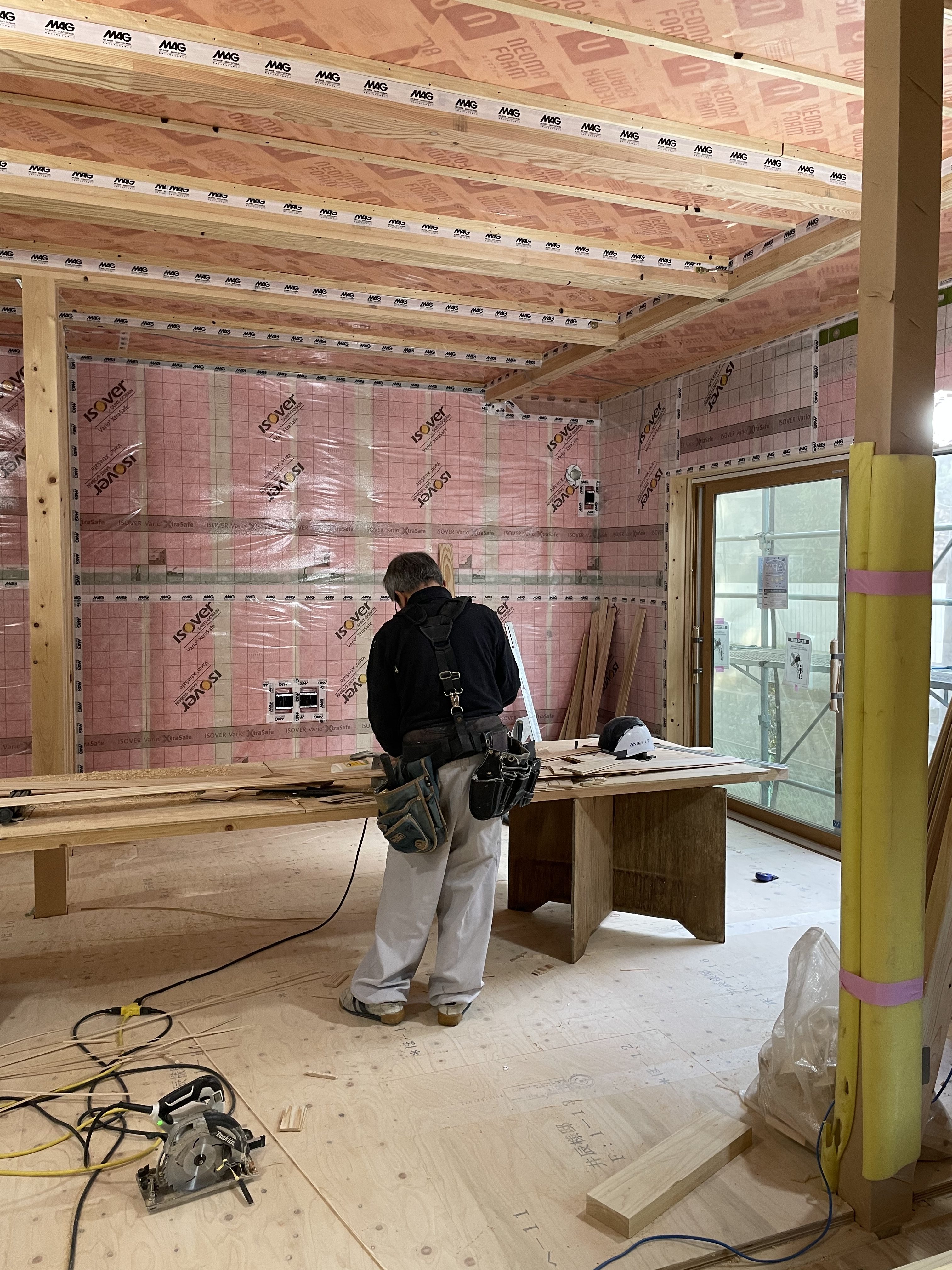 h谷川君がいなくなり、寂しそうに?黙々と作業するKさん大工さん。もうすぐ応援大工さんが2人入るのでペースがぐんとあがります。