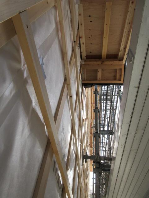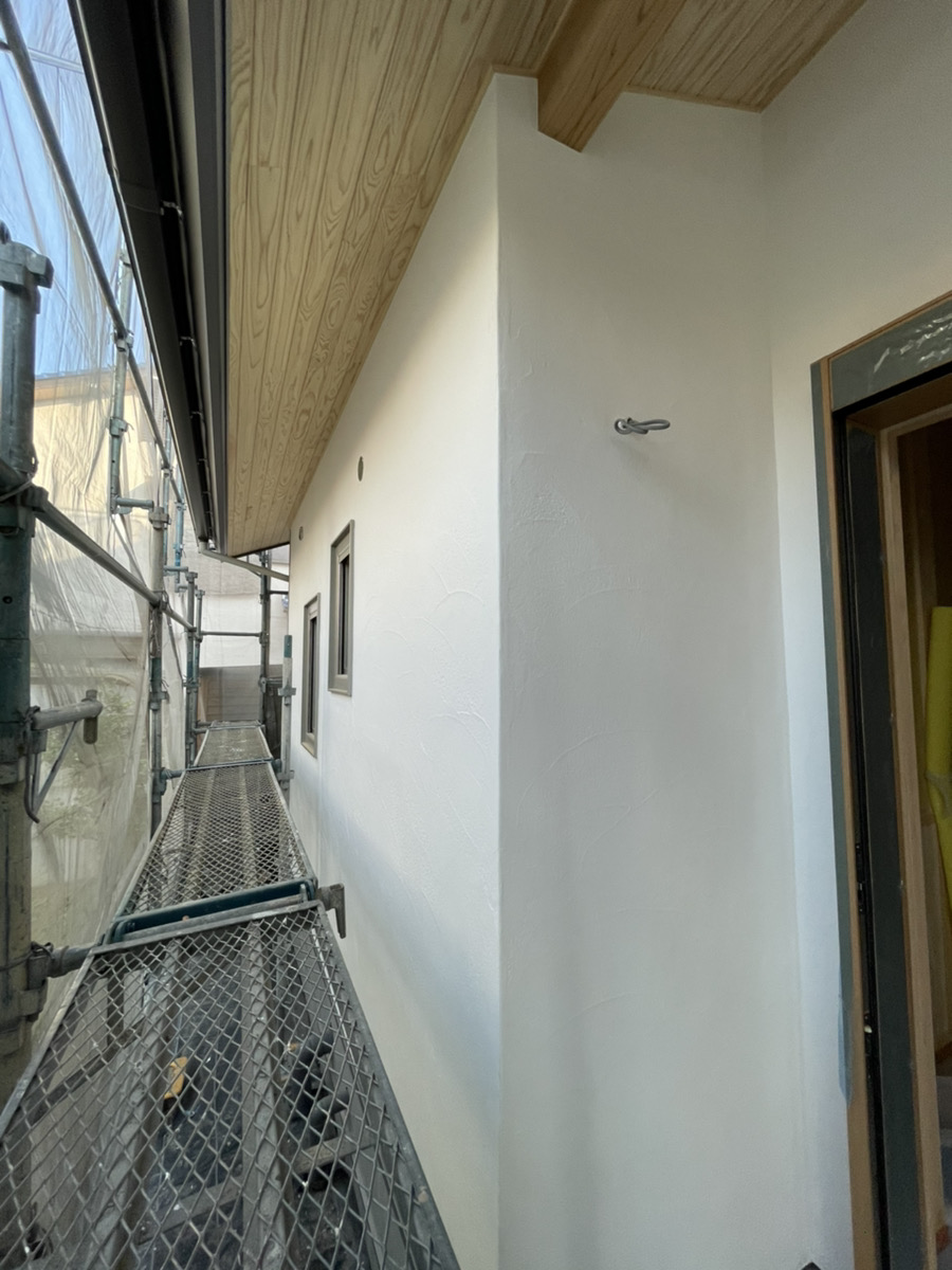 この後→防水紙→ラス網→モルタル→漆喰仕上げへと進んでいきます。