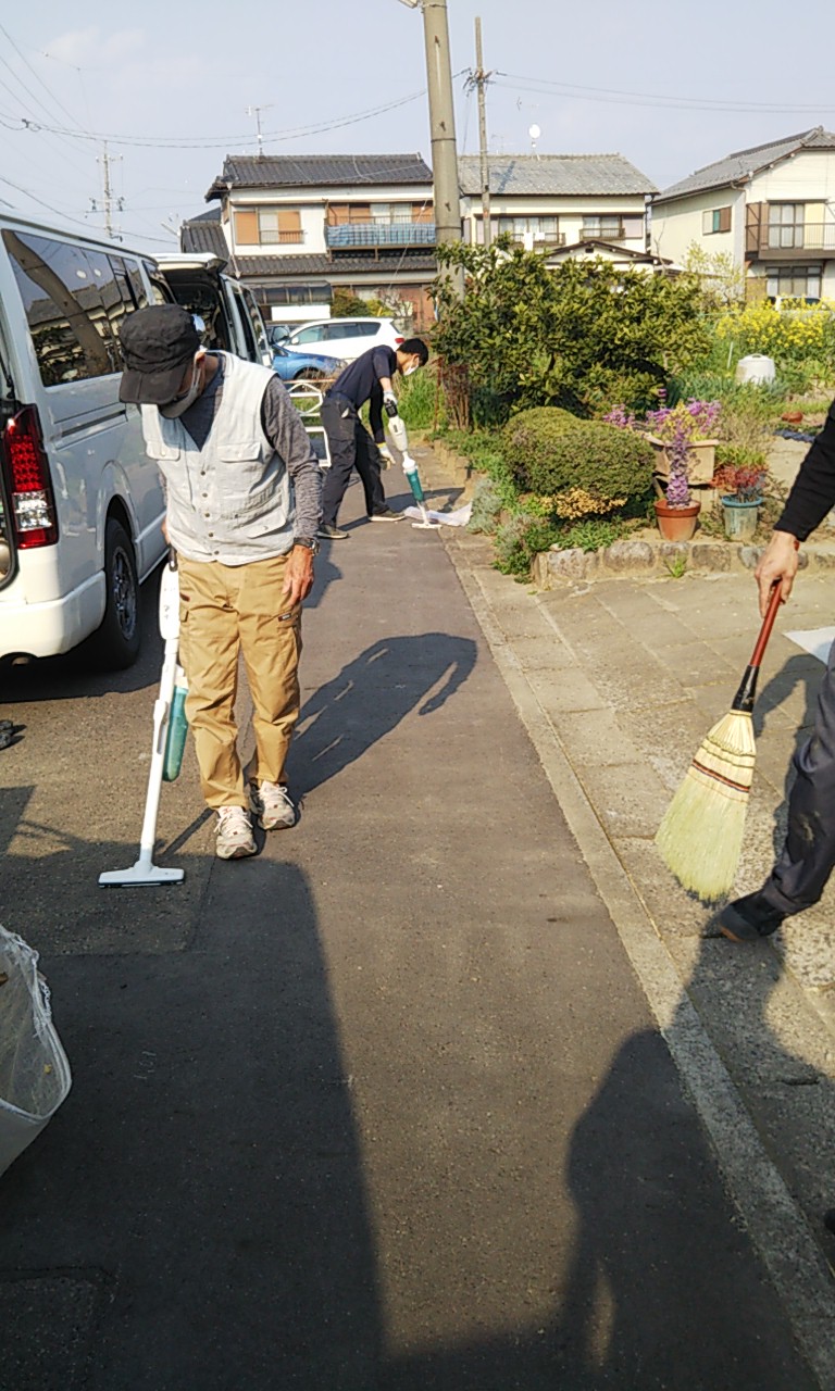 最後は清掃して片付け。マ〇タの充電電池式万能掃除機はアスファルトの上でもこの威力です。