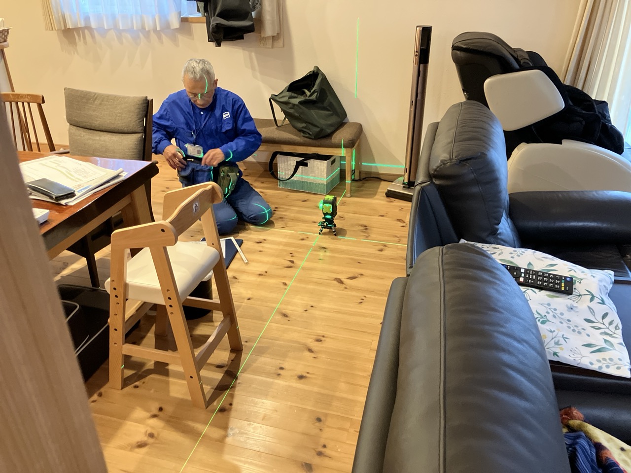 屋内外をくまなくチェックして、各箇所の劣化や建物の傾きなどないか調べていきます。延長保証を受けるには検査だけでなく、保証内容である雨水漏水に対して外壁の再塗装、再シーリングなどがメンテナンス工事必須ですが、この検査を受けた後に足場を組んで工事を行う事になります。内装に関しては検査を行い、その仕上材の向こうにある構造躯体に異常が無いかのチェックを行います。
