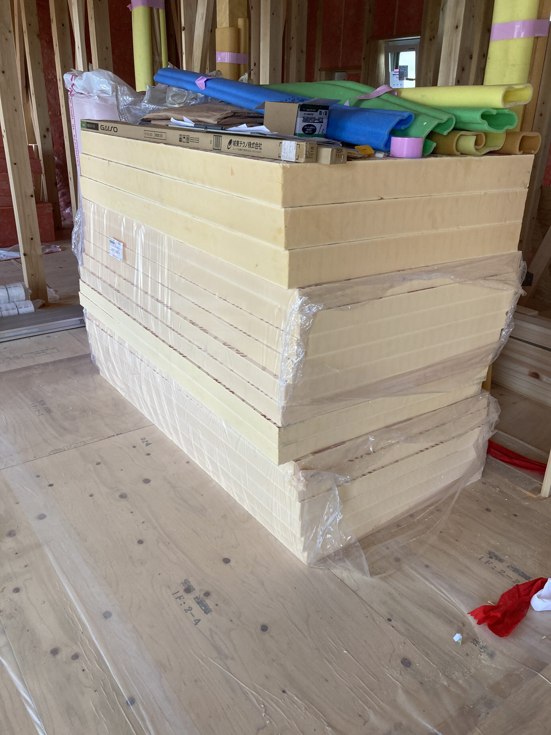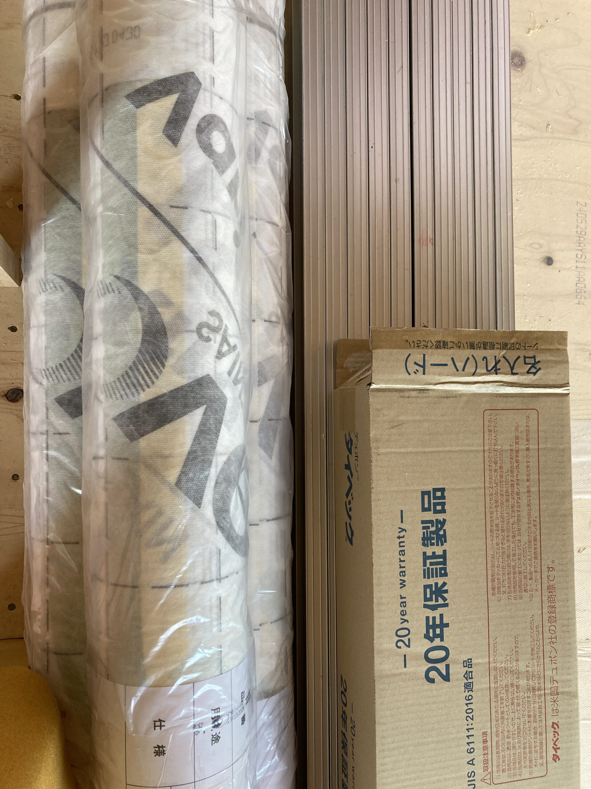 右が付加断熱の後に外部に張る『透湿防水シート』左は充填断熱の後に内部に張る『可変性調湿気密シート』です。今年の様に35度超えで、地域の特性か湿気が多い愛知県。夏型結露がおきてもおかしくない状況になりつつあります💦万が一と保険として選んでいた『可変性調湿気密シート』は今後は必須かも知れません。