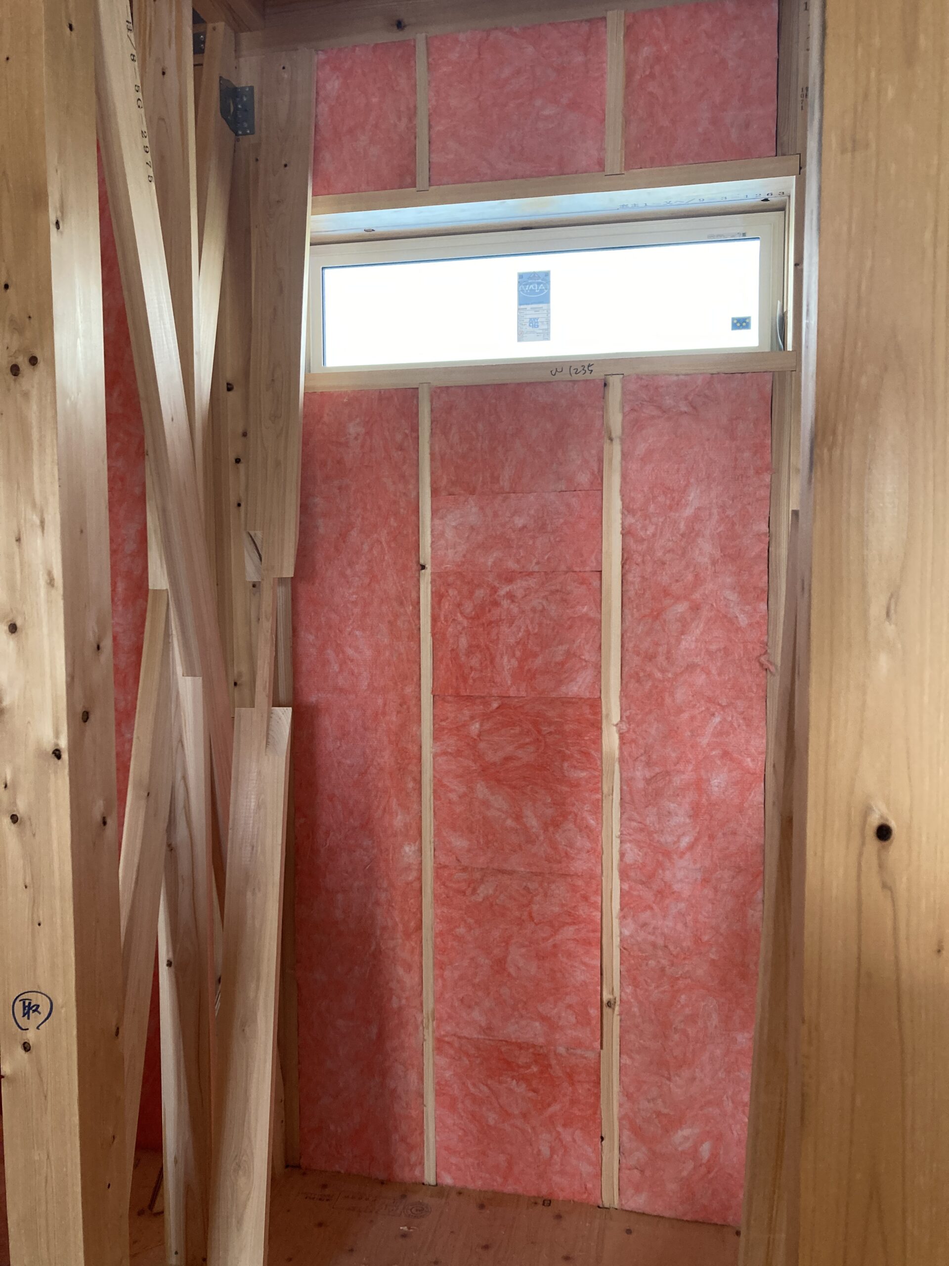 真壁(和室などの構造の柱が見える壁)は、断熱材の厚みを確保できない事から、厚みが薄くてもグラスウールの壁と同じ性能を発揮してくれる断熱材を使用しています。(ちょっとお値段は高いです)