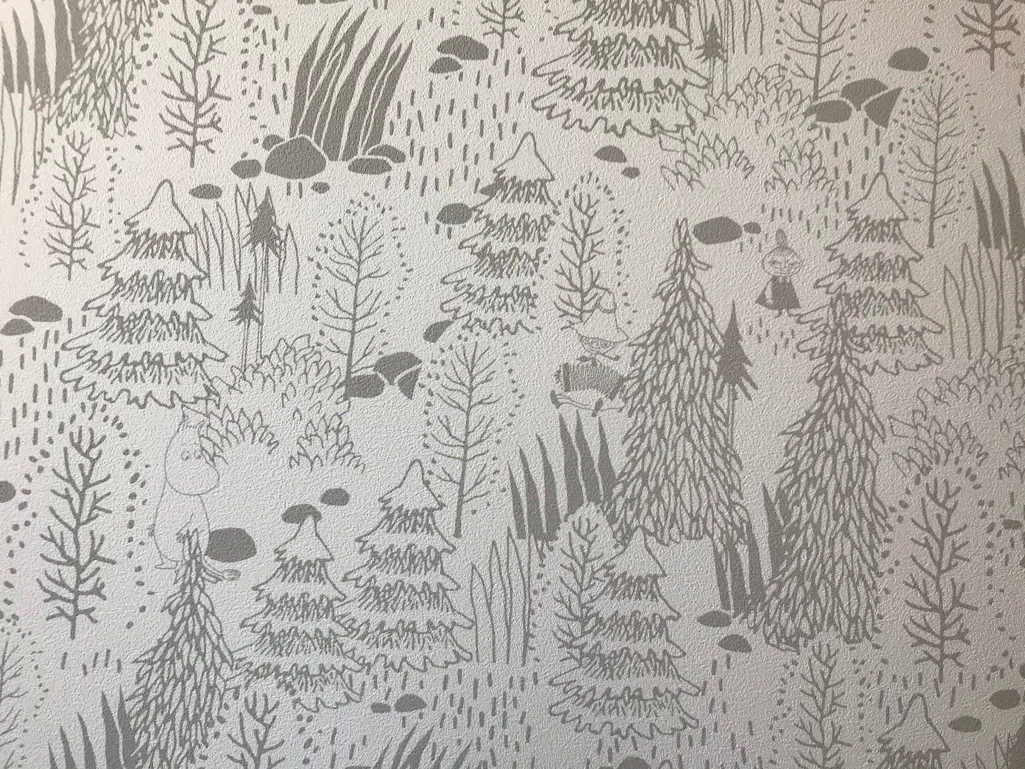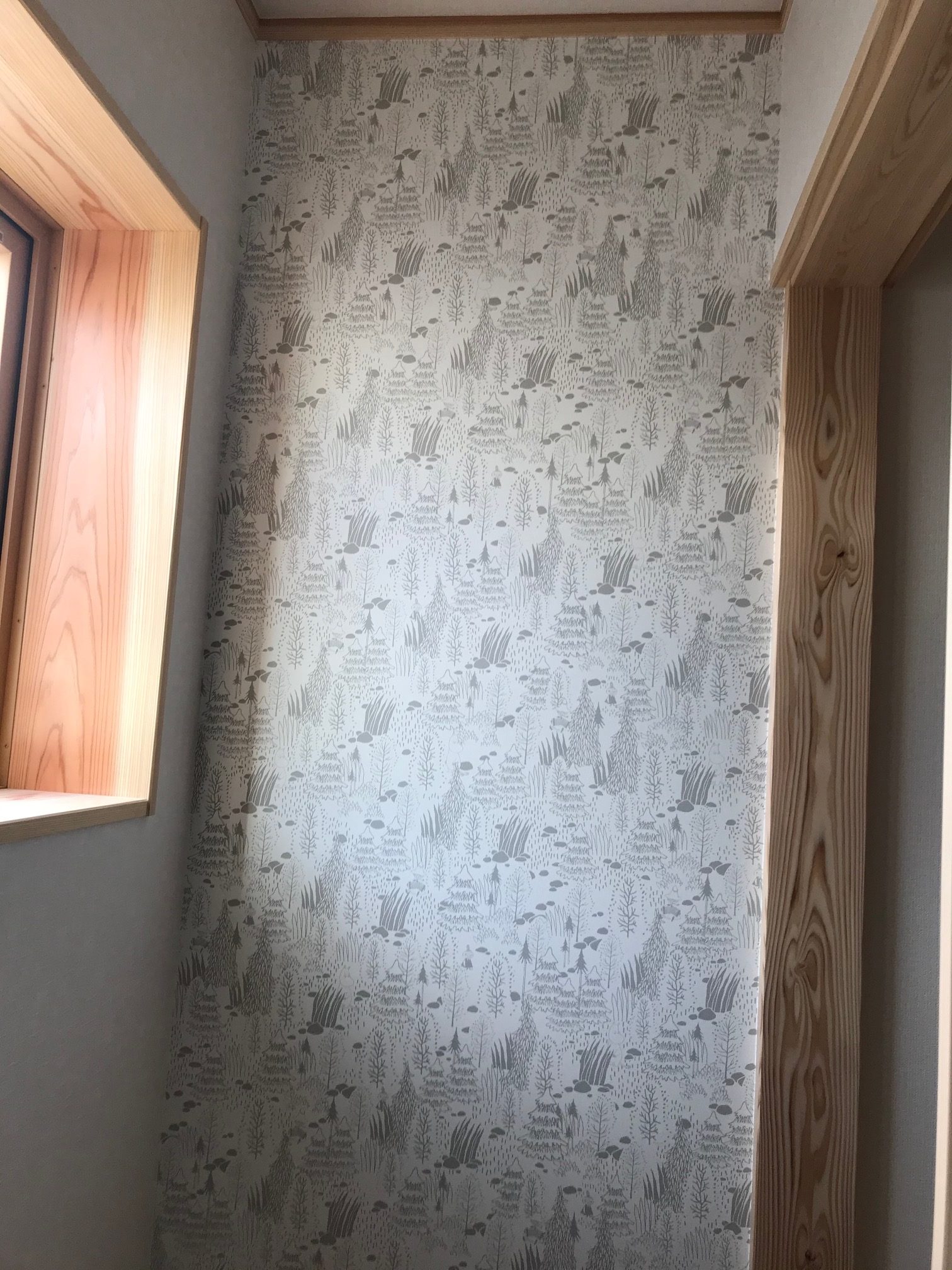 グレーの小さい木がたくさん書かれているクロスですが、よく見ると・・・。