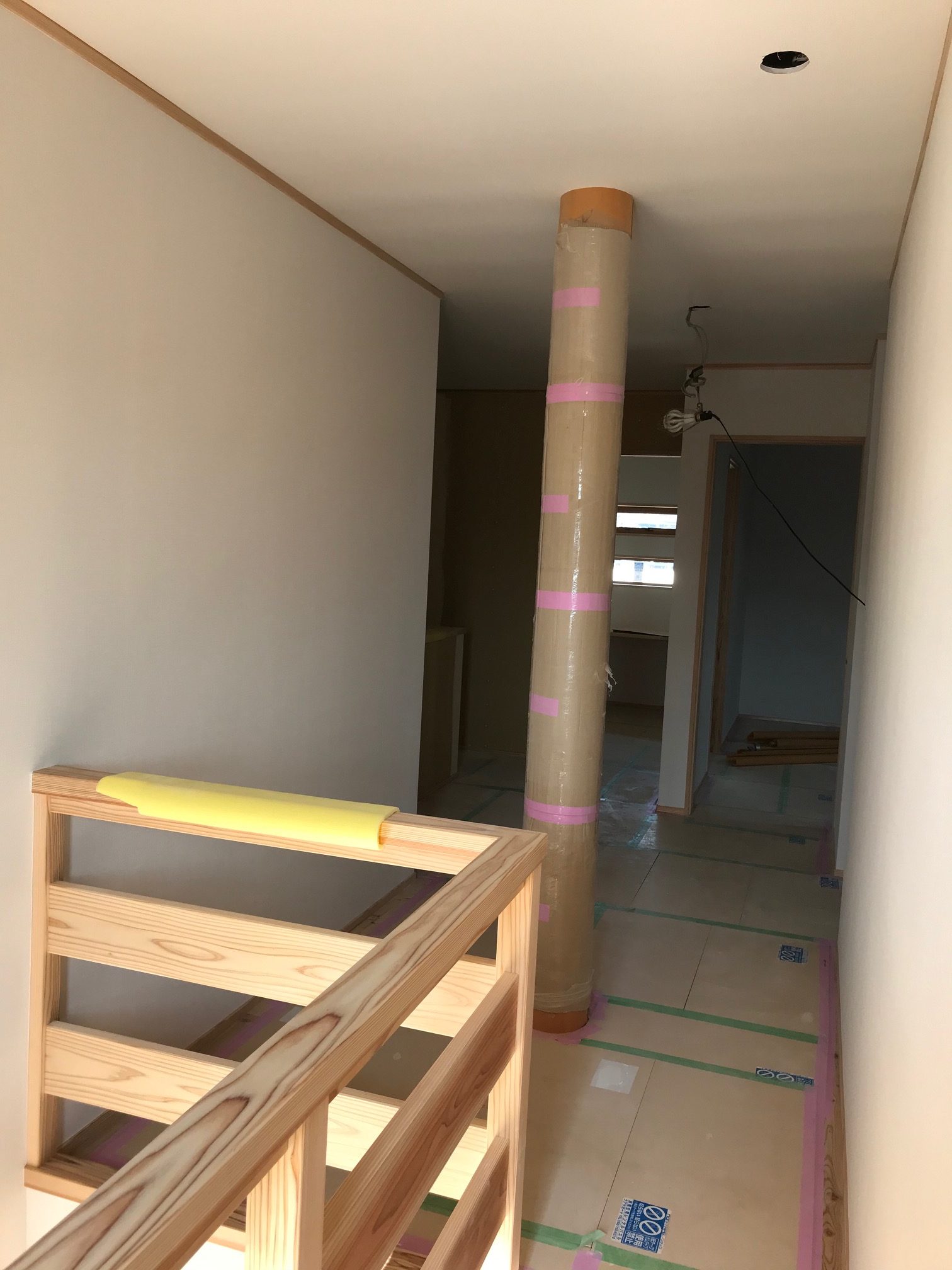すぐ横にある太い柱は通し柱で240mmあります。(職人さんが写っていない画像は2階)