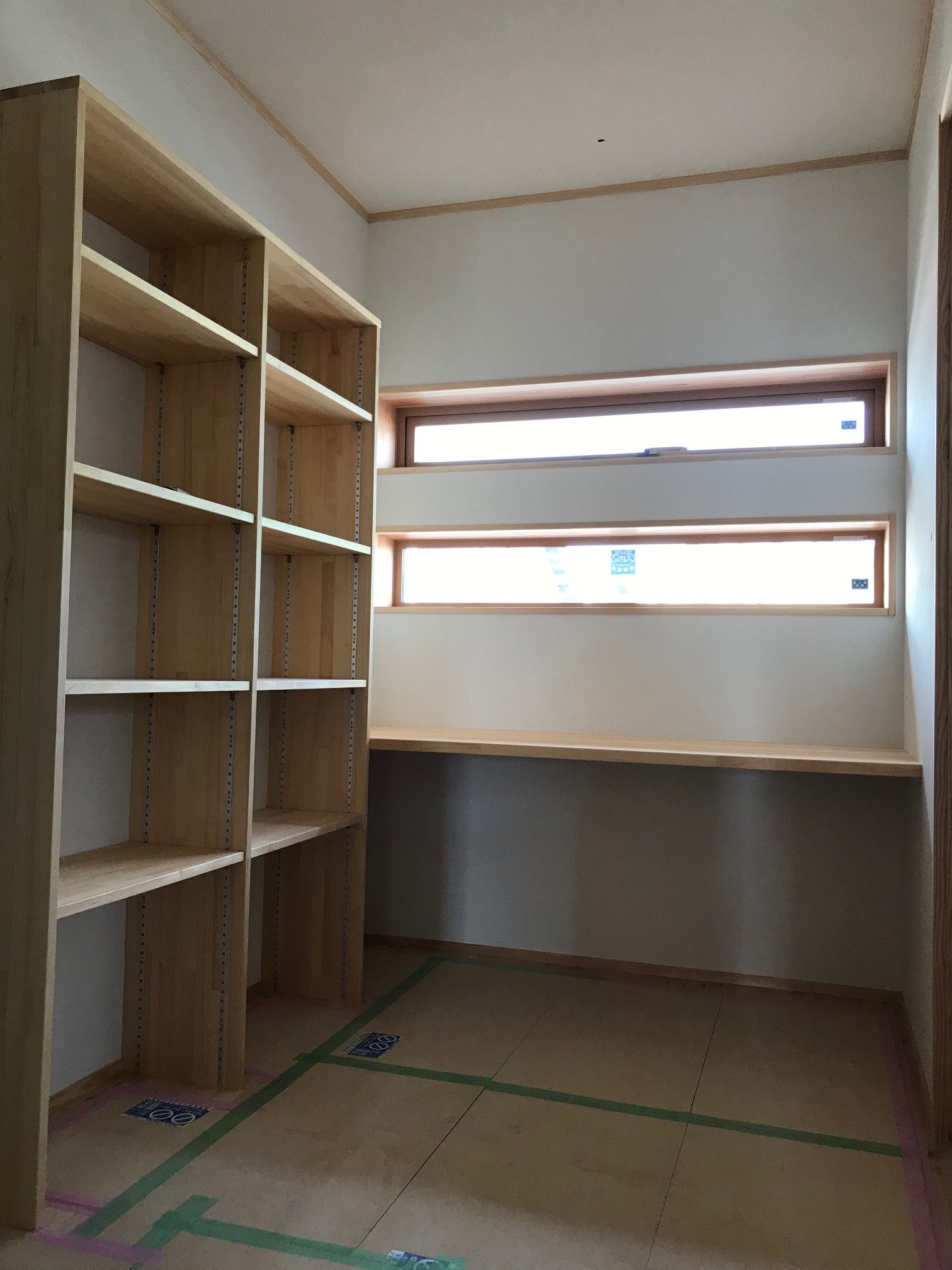 ここにはベッドが置かれる予定なので、ちょっとした小物を置いたり携帯電話の充電などできるようにしてあるんですね。
