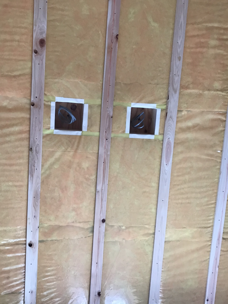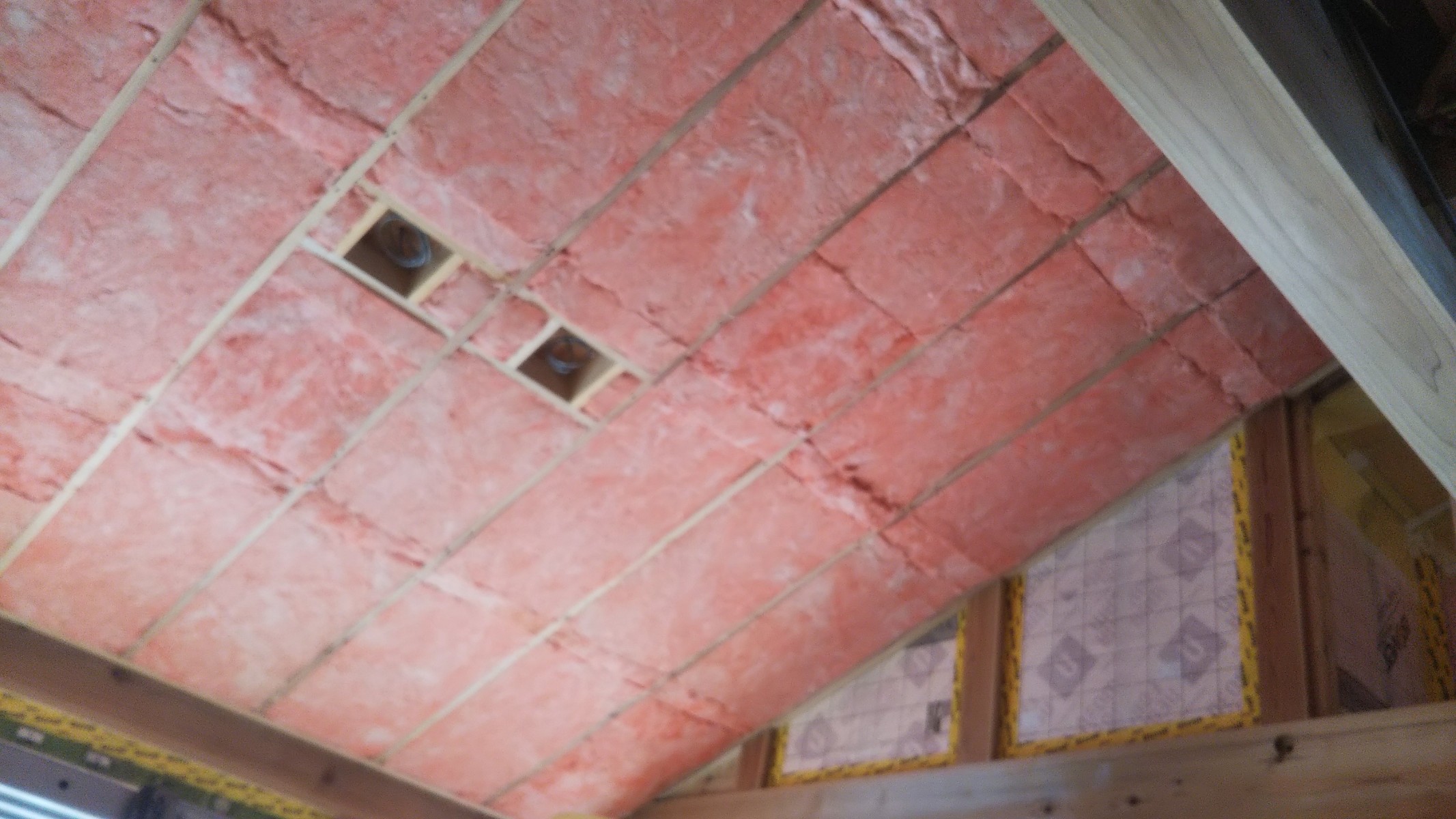 こんにちは。たがわです。 建築中の現場にふらっと訪問し、職人さんに邪魔!と怒られない程度にお話を聞いたり、現場の状況を紹介していくブログです。 今回、完成したら見えなくなってしまう断熱施工のご紹介です。 丁度、壁・天井の断熱材を見ることができる江南市の現場へお邪魔しました。 ☆☆ この現場の仕様 ☆☆ 天井・屋根/高性能グラスウール16K t=155 2段積み 内壁(大壁の場合)/高性能グラスウール16K t=120 内壁(真壁の場合)/フェノールフォームt=80 (壁厚が取れないため、薄くても断熱性能の高いものを使用します。) 外壁/付加断熱として高性能グラスウール16K t=105 基礎外周部/ポリスチレンフォームt=75 基礎内周部(立ち上がり、底部1m含む)/t=50 ※単位Kは断熱材密度、tは厚みです。 サッシは樹脂サッシを取り入れています。 内部のもう少し細かいお話をしていきます。 コンセントボックス埋込部にも気密カバー取付の上、気密テープを施工します。   ダウンライトなどの埋込照明がある場合は合板などで箱型を作りはめ込みます。 隙間はほどんどありませんが、念のため入隅になっているところにコーキングまたは気密シート巻き込みます。   金物からの熱橋を防ぐための断熱施工や、サッシ枠の隙間の断熱施工はもちろんですが、細部の施工をしてはじめて高断熱・高気密が出来上がります。 断熱材はどんなにきれいに仕上げても施工が進むと見えなくなってしまいます。 でも、家の性能を上げるには見えない場所がとても大事なのです。 ミノワは、現場に携わる従業員、大工さん、業者さんも出席し、さらに住みよいお家を作るため、勉強会を定期的に行い、日々知識を深めています。