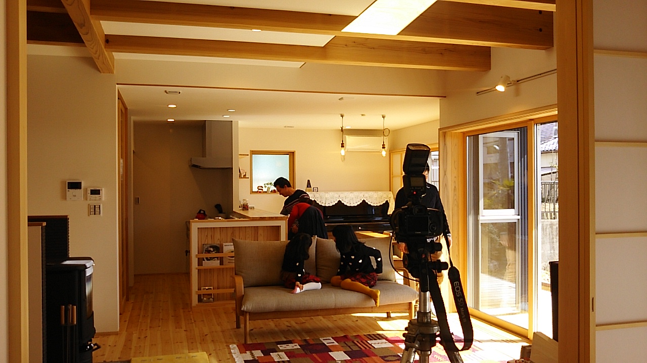 昨年竣工しましたS様邸に、雑誌に記載する記事の取材のため、記者、カメラマンとともにお邪魔しました。