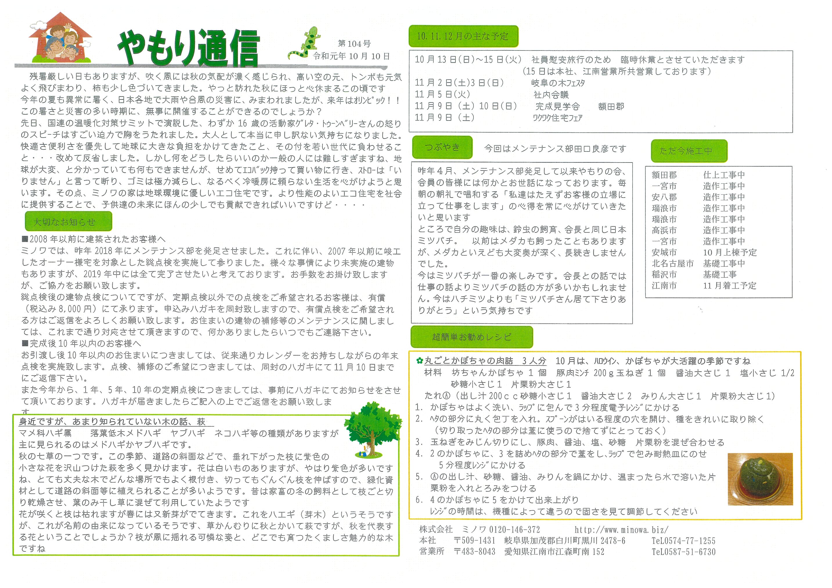 この通信を作成したのは台風19号が上陸する前でしたが、最近の異常気象について書きました