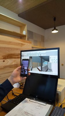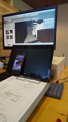 新型CVの影響で外出自粛、3密を避けるという情勢の中、お客様とLINEのビデオ通話でお打合せをしてみました。(ちなみにお客様は虎ではありません:写真左)電波状況に問題が無かったためか初めて行った割にはスムーズにお打合せする事ができました。スマホのフロントカメラを切り替えて事務所のCADでイメージ図を投影したりして、普段お客様のご自宅にうかがってはできないような事もできたような気がします。