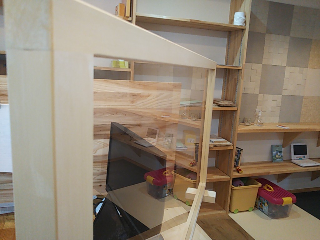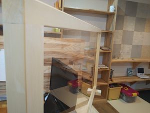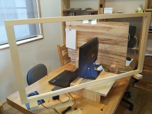 ご来所でのお打合せ時の飛沫防止用に透明アクリル板の衝立も製作されました。