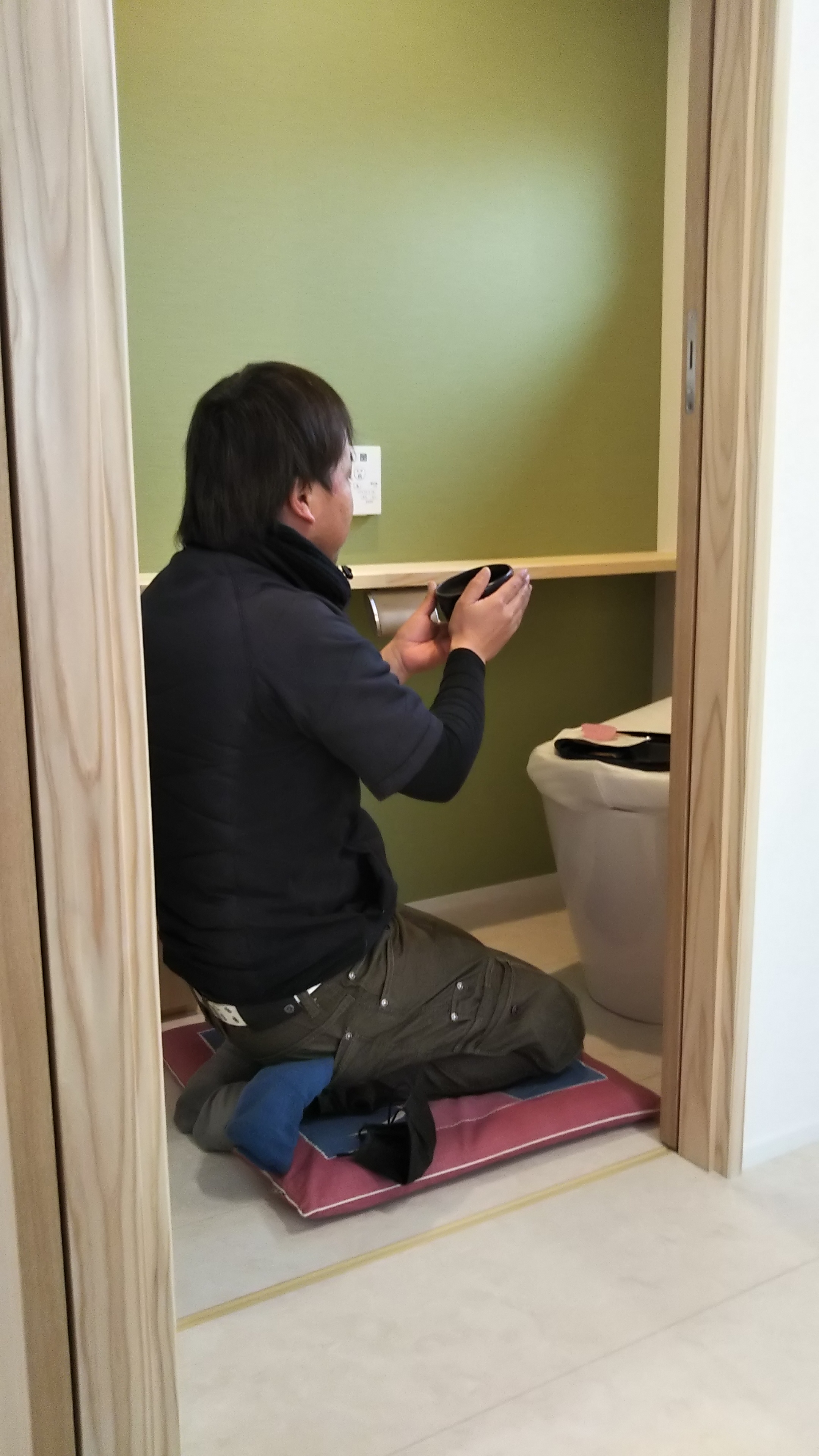 お引き渡しをさせていただきましたa様邸の地域(愛知の尾張地方の一地域)では古くから『トイレ開き』という風習があるそうで私達も参加させていただきました。