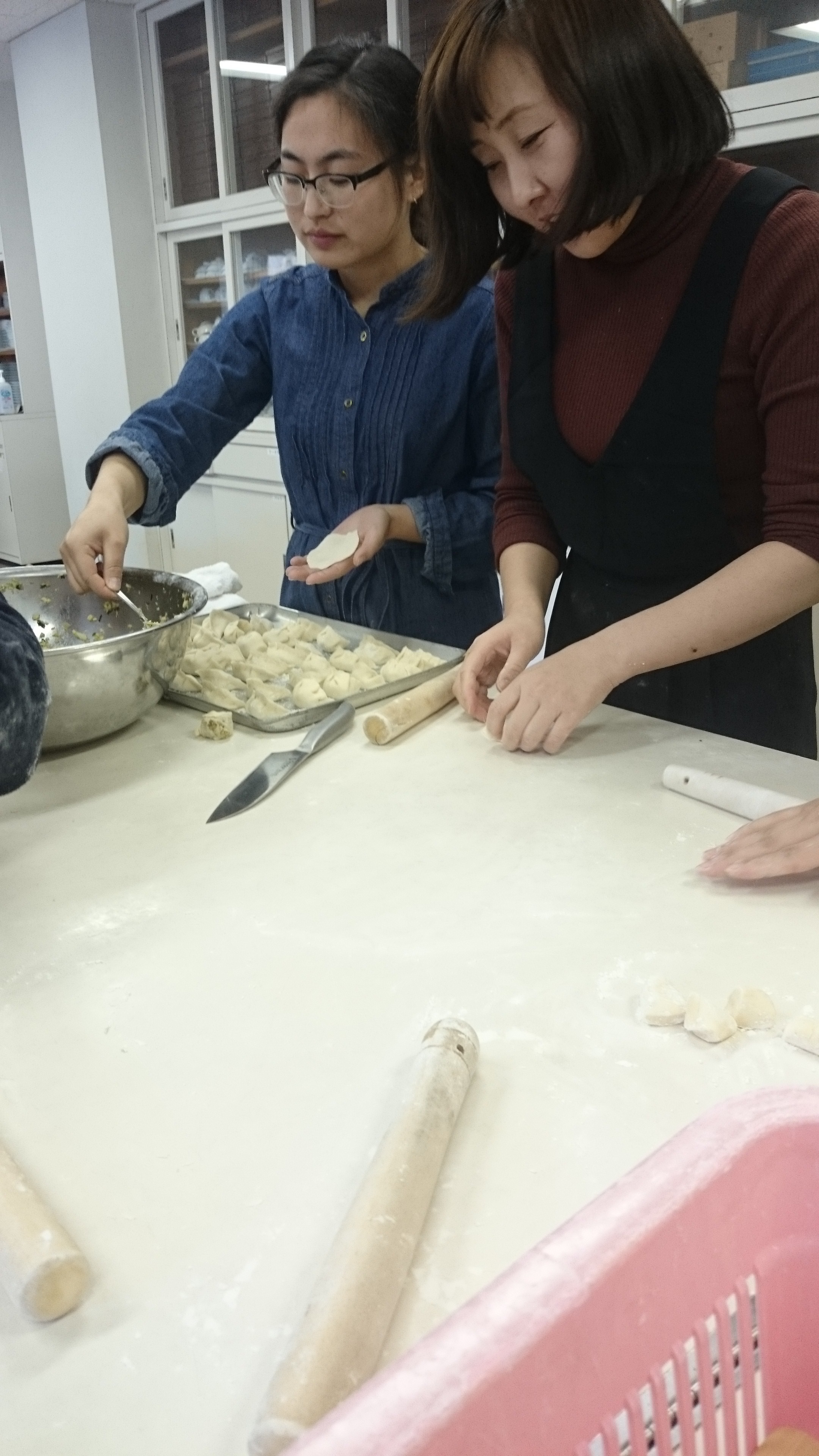 水餃子ですがモンゴルでは餃子は主食とのこと、モンゴルの学生の餃子の皮づくりがとても
