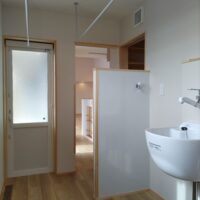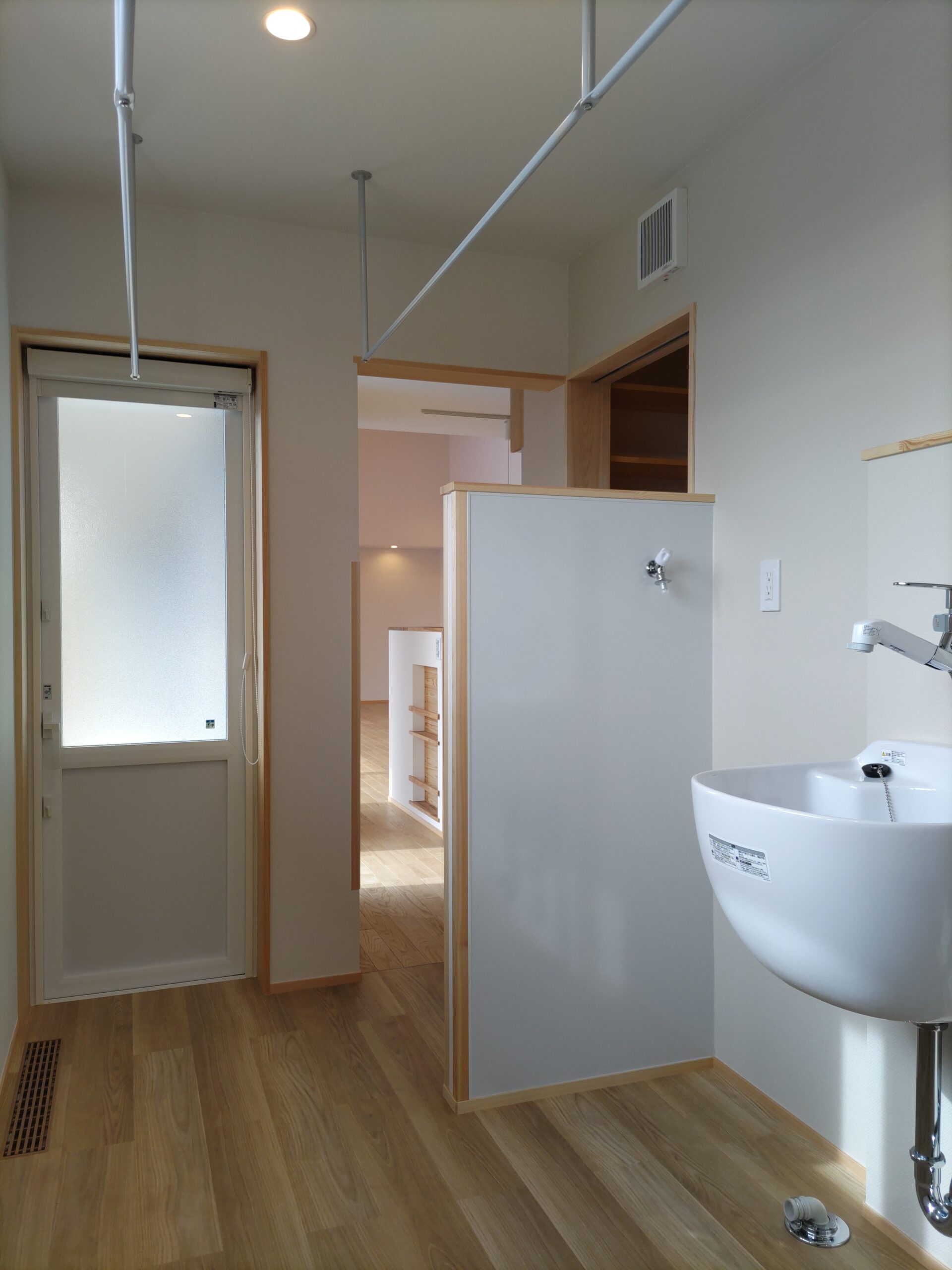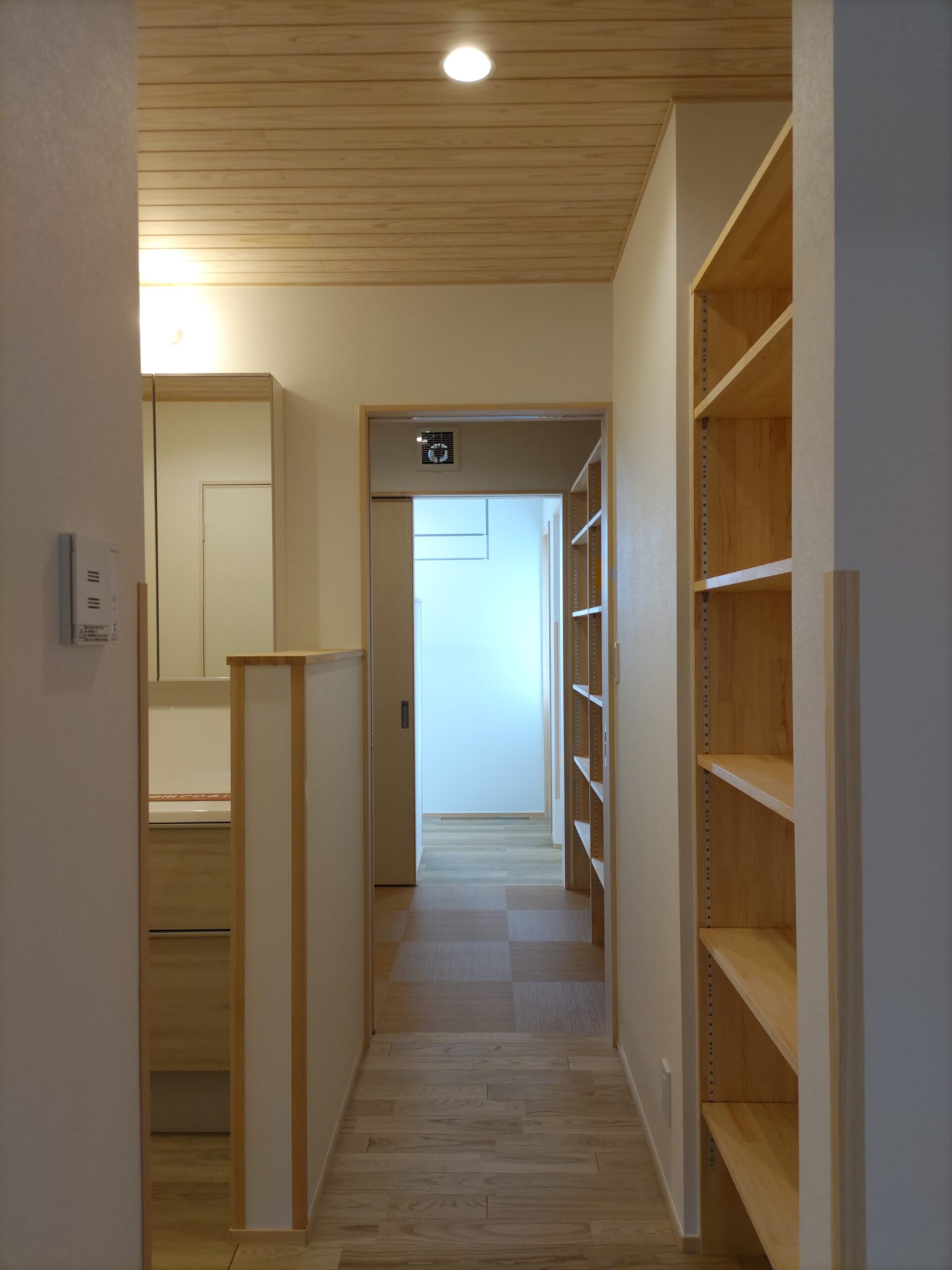 キッチンの背面を中心に、キッチン⇔パントリー⇔廊下⇔洗面⇔脱衣室⇔ランドリールーム⇔キッチンと言う家事動線計画となっています。広いf様邸でも、これは楽ですね👍