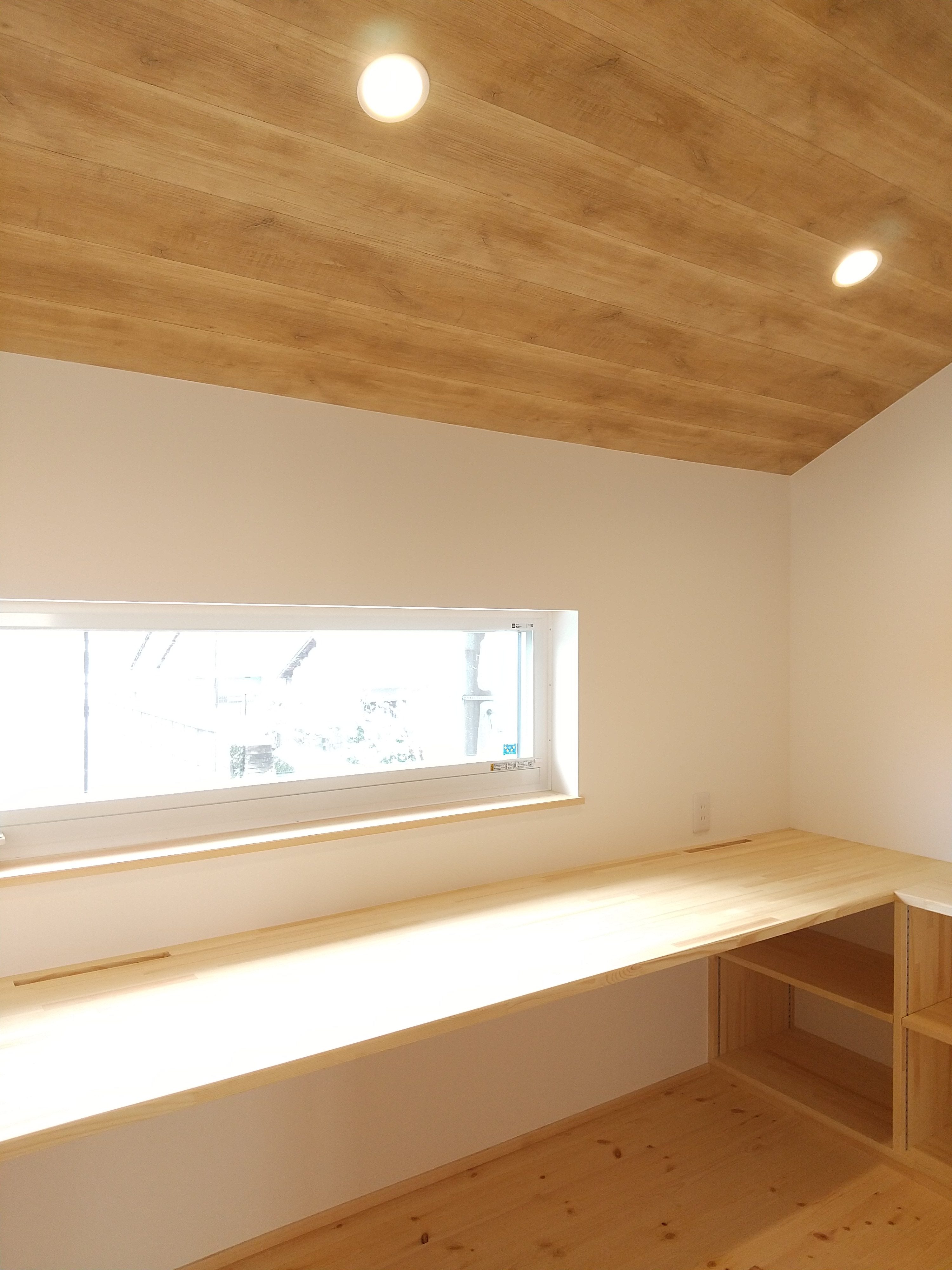 寝室の横には、奥様の書斎コーナー。コロナ禍で、リモートをされる方も多く、このようなスペースはmustになりつつありますね。あ!確か、奥様、どこかの見学会で晩酌もしたいかもっておっしゃっていましたね。確かに、広々LDKではなく、たまにはこもり感のあるスペースで、まったりするのもありですね。