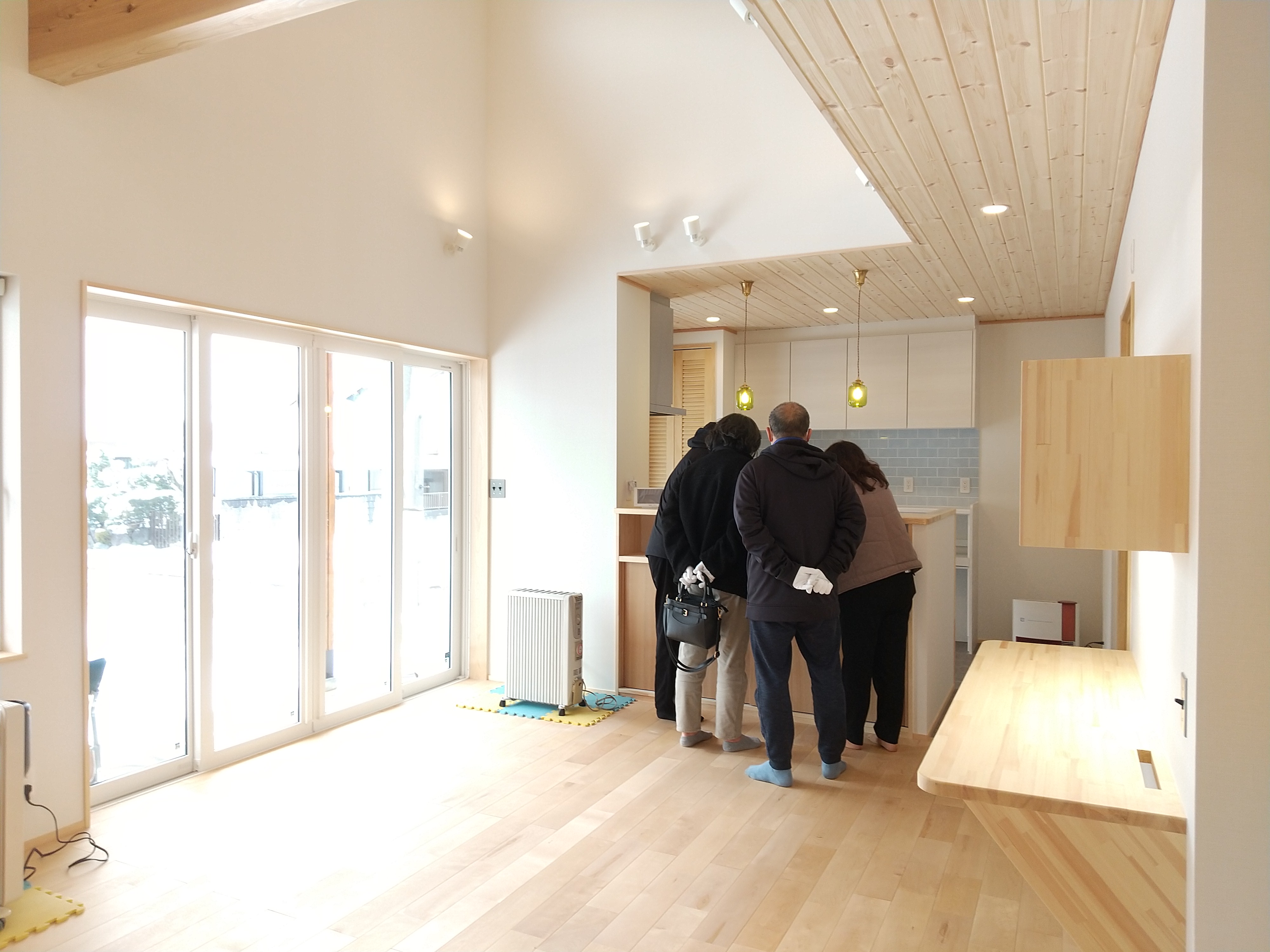 こんなに寒くて、運転もヒヤヒヤ~の中、ご来場いただきました皆様、ありがとうございました!雪も降って寒い両日でしたが、yk様邸は前日の夕方から2台のオイルヒーターで暖めておいただけで、朝からふんわりと暖かく、高断熱高気密住宅の良さを体感していただけたので、ミノワとしてはニンマリです(笑)