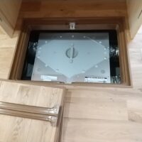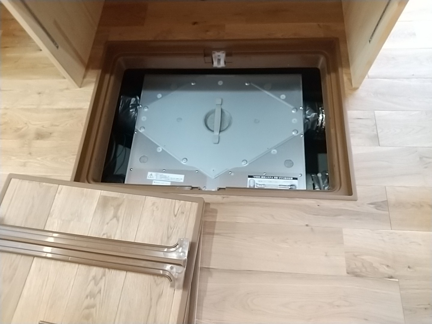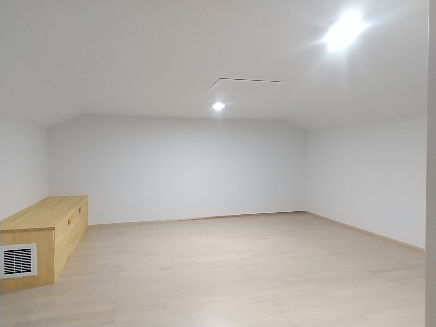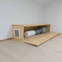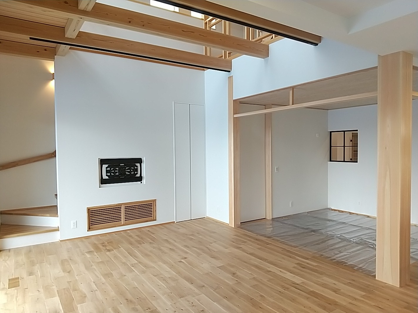 小屋裏には、採用されている熱交換システムのオプションで小屋裏の空気を床下に送り込むファンが設置されています。手動運転もできまずが、温度を感知して小屋裏の温度が高くなると動いて、床下に空気を送り込むことで、下階からの冷気を小屋裏にまで循環してくれます。吹抜けに設けているシーリングファンと同じような役目をしてくれます。涼しくなったとは言え、高断熱高気密ではない家では小屋裏は暑くて居られない場所ですが、ご来場いただいた皆様、『小さいお子さんの部屋になるね~』なんて言われるくらいの快適さでした。