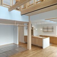 1階南には、21帖LDK+4.5帖のタタミコーナー。リビング上には、吹き抜けが設けられ、家族が多くてもゆとりがある空間です。