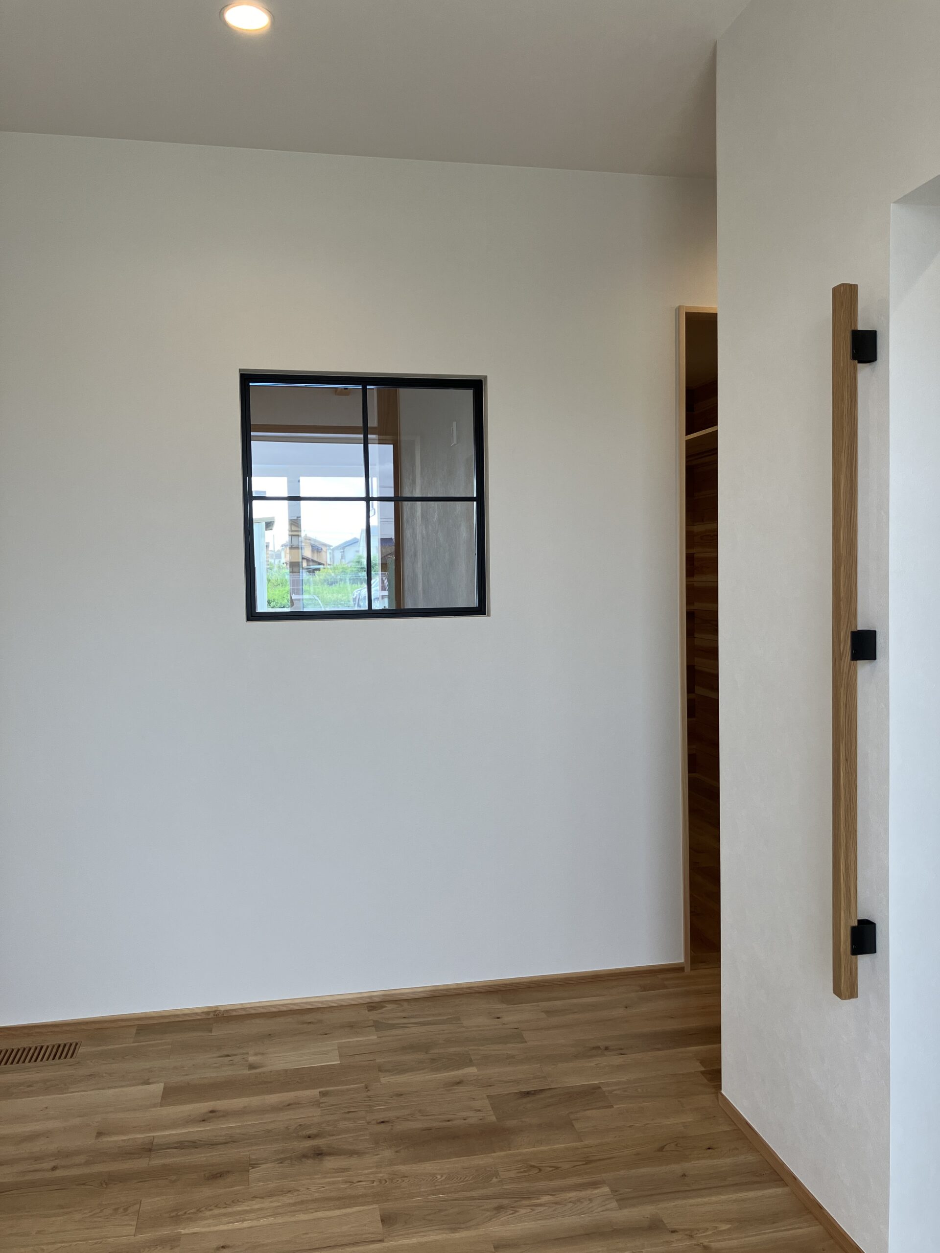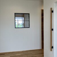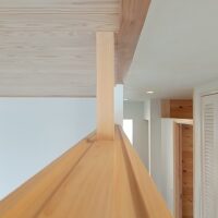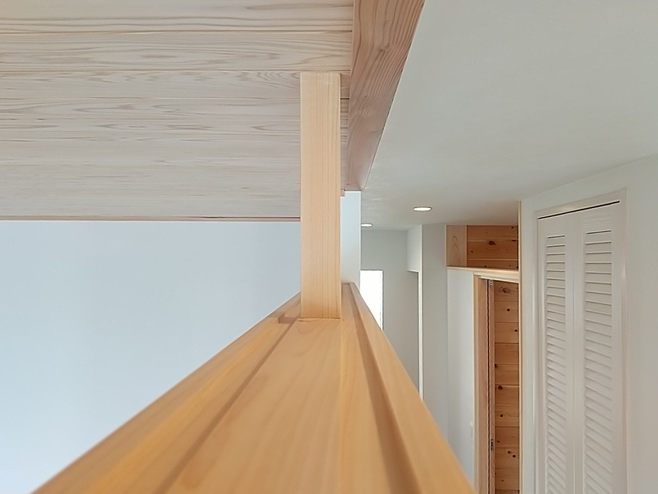 2階は吹抜けに接して通路を設け、各居室へアクセスできるようになっています。高気密高断熱の家は、今までと違って熱が逃げる事が少なく、冷暖房用にたくさんのエアコンが要らなくなります。いかに1台のエアコンで各部屋が涼しくまた暖かく快適にできるかが課題なので、こうして吹抜けを設けて、LDKや廊下などの共用部分に各室の居室が面していると行き渡り易いです👍