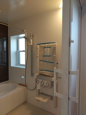 ユニットバスは、シャワー椅子に座って、シャワーが浴びやすいように、LIXILのアライズにシャワード・バスパックと言う商品を取り付けられています。湯船に漬からなくても温まる事ができるそうです。確かに、冬場にシャワーだけの時はちょっと寒いですよね。湯船に漬かる人と漬からない人では、幸福度が違うと言われていますので、これだったら湯船に漬からなくても幸福度UPしそうです👍