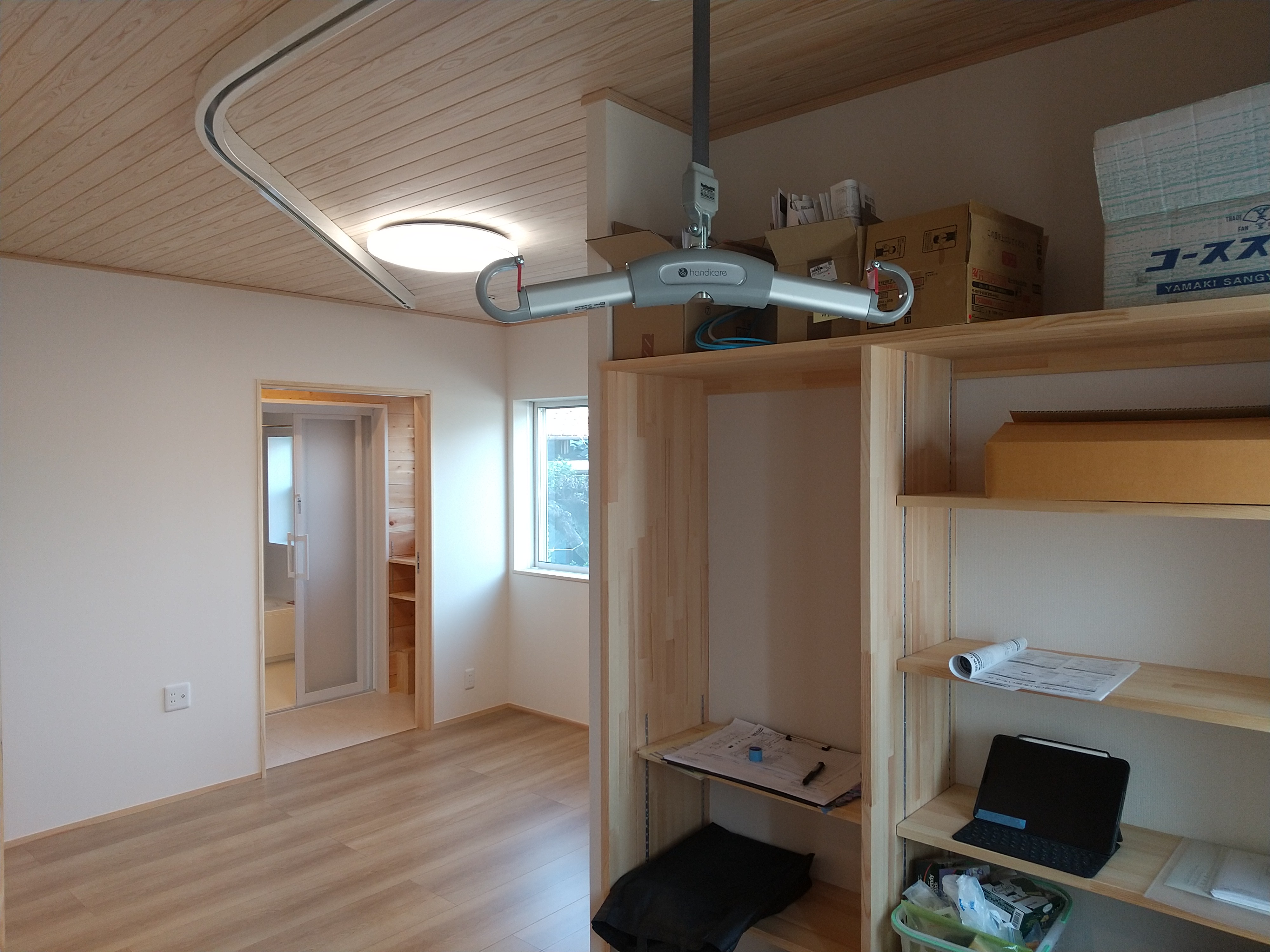 gm様邸の見どころの1つは、車いす使用者の息子さんの介助を手助けしてくれる「リフト」です。息子さんのお部屋に車いすで行けるように、玄関から土間続きに部屋が計画されています。土間からベッドまでこの「リフト」が息子さんを運んでくれます。ちょっと乗ってみたいです。最近は本当に便利な物がいっぱいありますね。以前、リフォームで階段昇降機を取り付けた事がありますが、1階で商売をされていて2階に住居がある方で、お年を召したお母様が階段を安全に上り下りする為に付けられたのですが、ちょっとしたアトラクションの様で楽しそうでした。