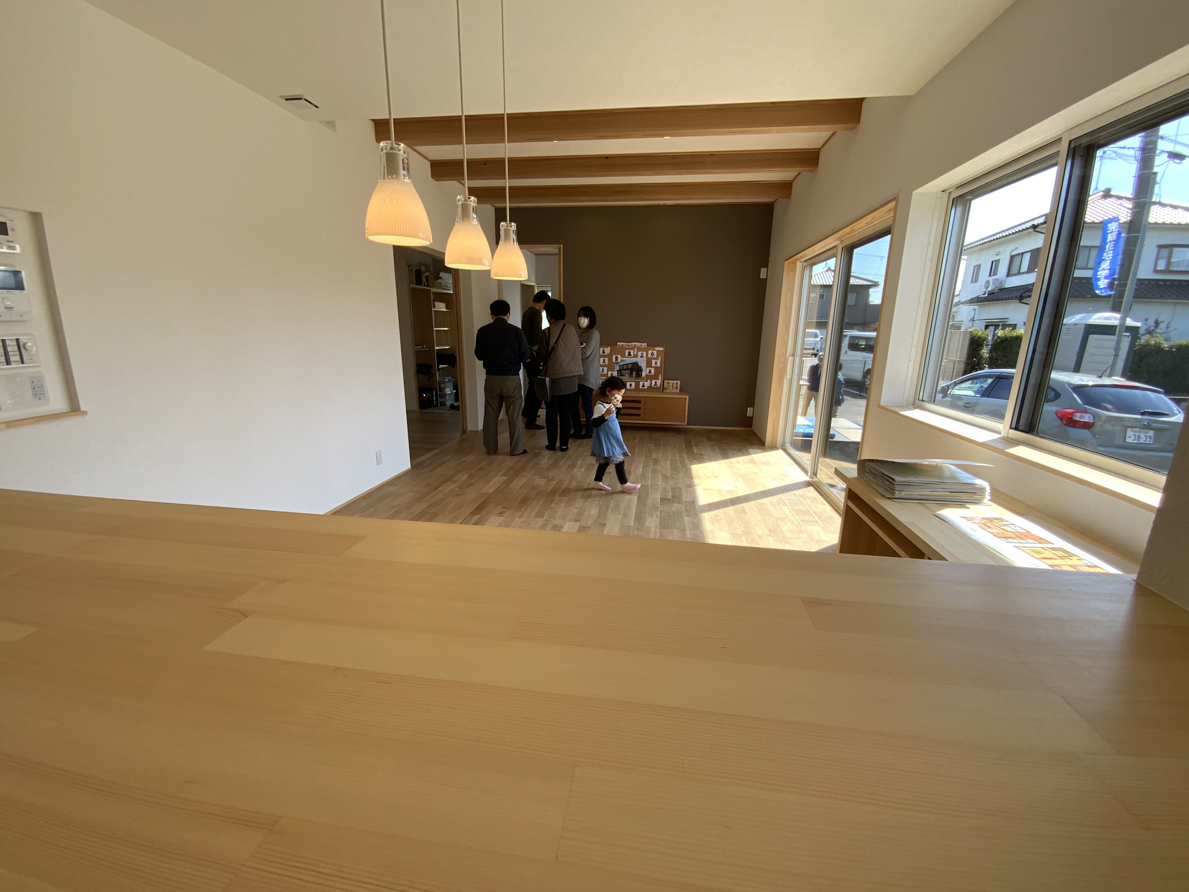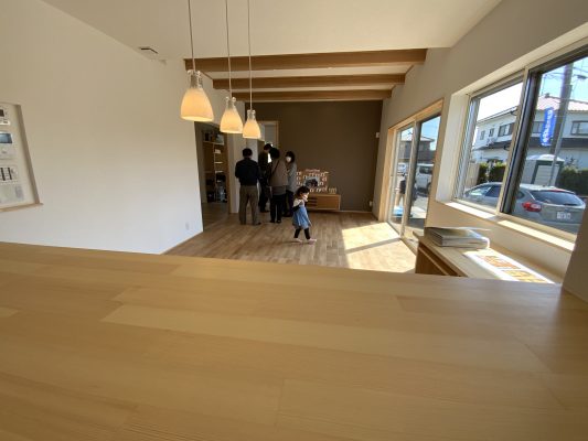一昨日の雨から一変、3月に入り春らしい陽気で、昨日の午前中は暖かったのが、昼頃から風が強くなり、夕方には寒くなり、本日は肌寒いお天気でした。ミノワの家の暖かさを体感していただくには、ありがたいお天気です。今回はミノワで前向きにご検討いただいている方やご契約された方に多くご来場いただき、ご自身の家のプランと照らし合わせながらご見学いただけました。パースや3Dでは、体感できない空間の広さなども、見学会はイメージしやすいので、この様な機会を設けていただけると私達も説明しやすく大変助かります。m様、2日間、本当にありがとうございました。