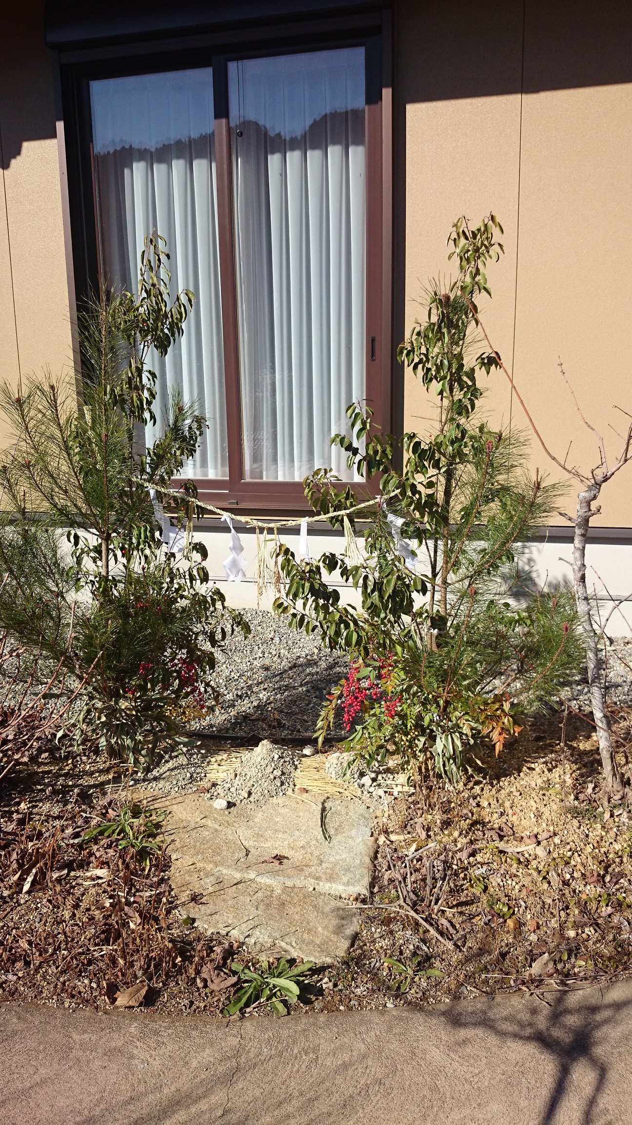 写真は社長が山から木を切ってきて飾った門松です