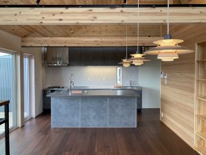 rsms様邸は、坂を上り切った見晴らしの良い場所を活かして、建てられています。多くの方が、1階にLDKと水廻り、最近は更に主寝室を出来たら1階になんて言う方が多いのですが、rsms様邸は2階がLDK。今はお洒落な階段昇降機という強い味方も居ますからね、大丈夫。年をとっても2階に上がれますよ👍キッチンから続く屋外テラスは、季節のいい日に外でブランチしたり、夜景を見ながらお酒も良さそうです🌟