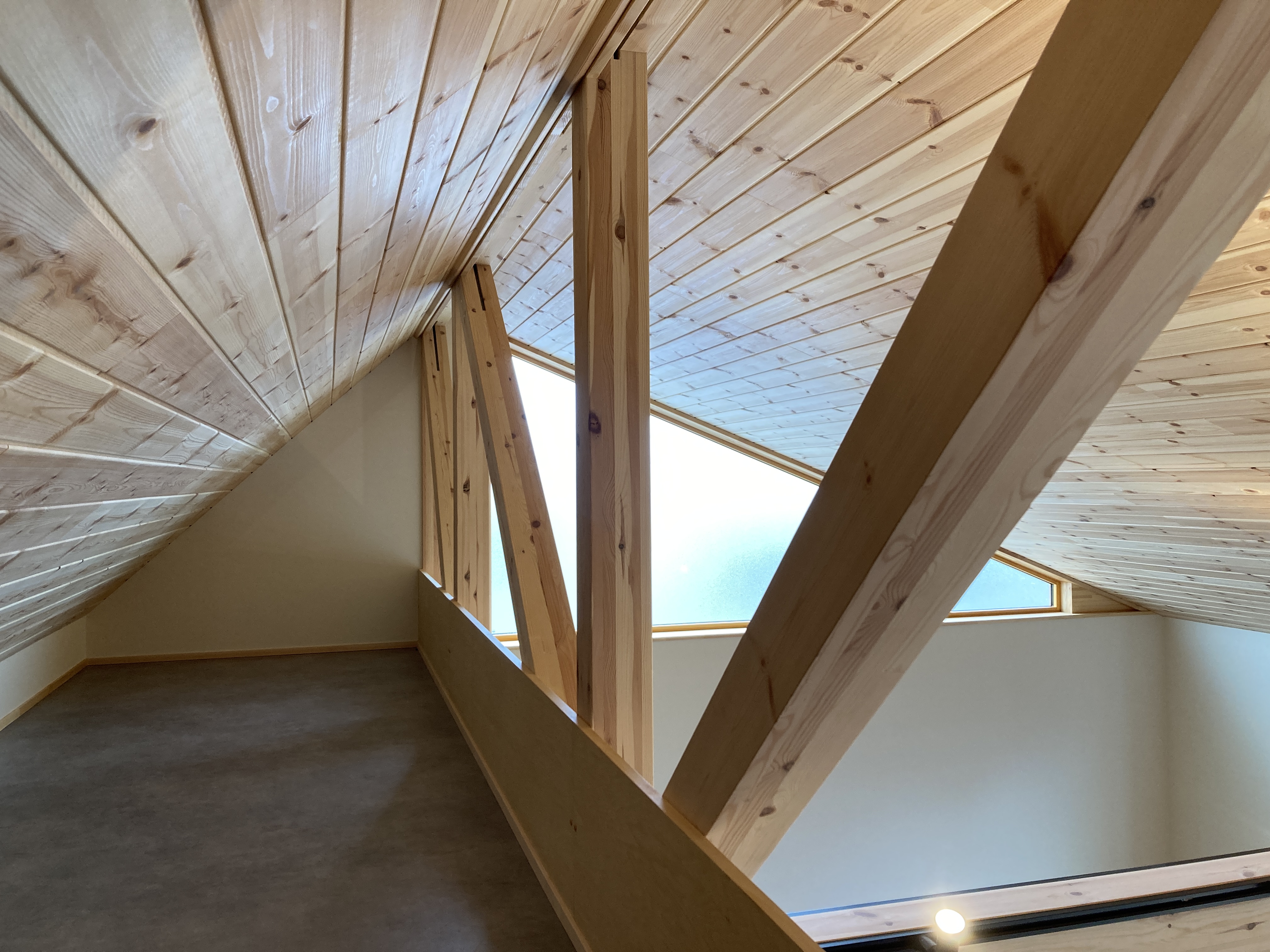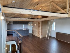 トラス構造は必要な構造材ではありますが、ロフトやLDKの空間の良いアクセントになっています👍