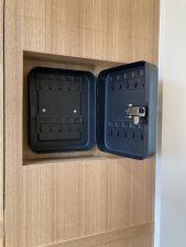 玄関収納の横に取り付けられたBOXは、スマートキーの電波を遮断してくれるキーBOXだそうです。車好きなs様からのご支給品。すっきりきれいに納まりました👍車もですが、家の鍵も車と同じシステムにされる方が多いです。便利ですが、玄関の近くに鍵を置いておくと玄関の鍵が開いてしまう事も💦皆さん、用心してくださいね。