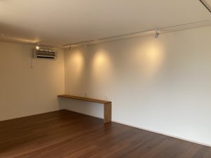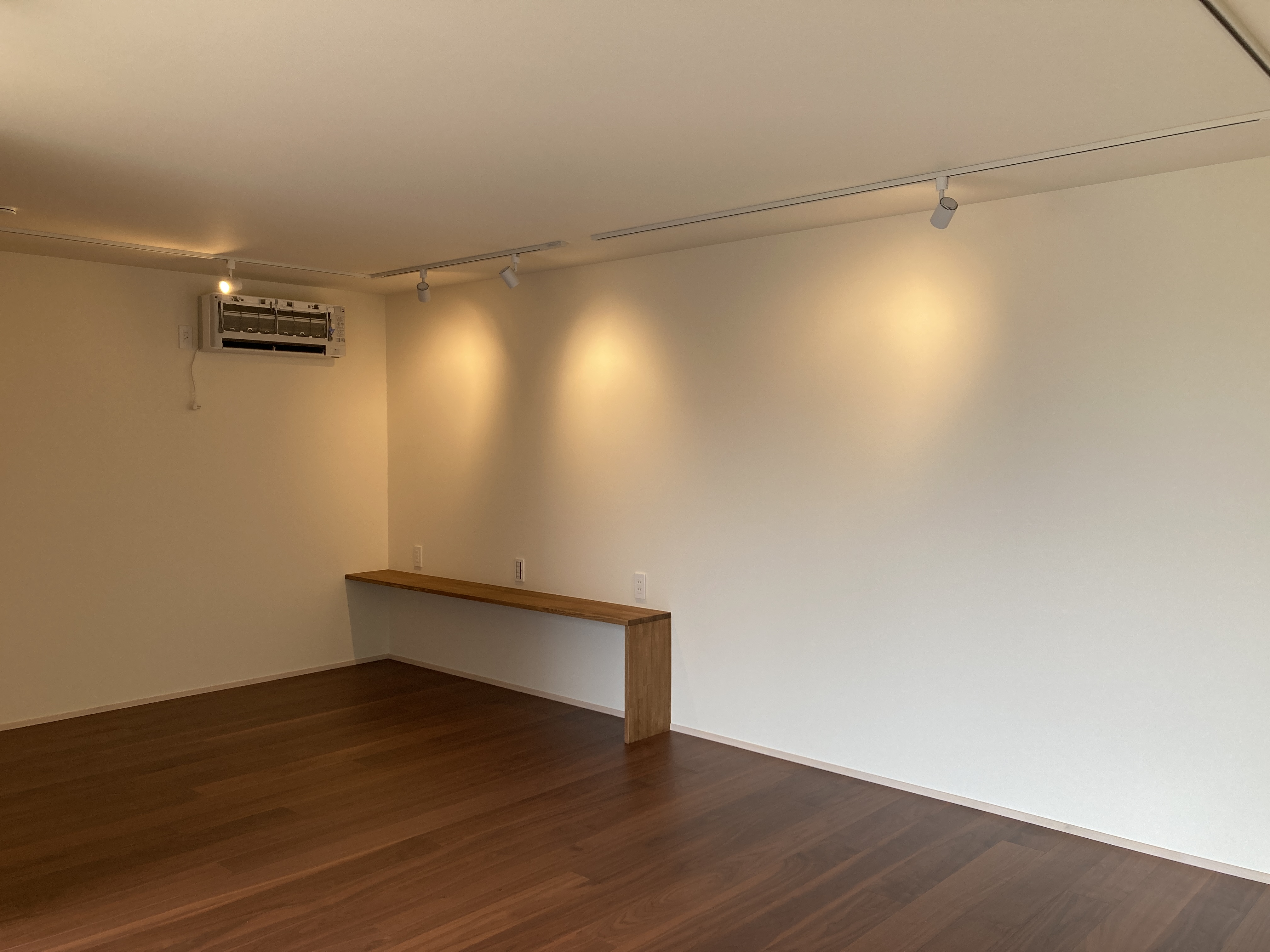 1階の寝室も12.9畳と広~い空間。個室の照明計画は、予算的にも他の空間に比べておざなりになりがちですが、この寝室は画廊の様な照明計画。白い壁をただ照らすだけでもお洒落な感じですが、アートな物を飾りたくなりますね。