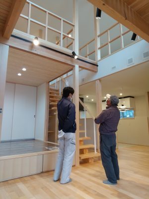 ty様、こだわりの素敵な空間を見せていただき、皆様楽しんでみえました。ありがとうございました。あと少し外構工事を終えて完了検査を受けるまでご入居をお待ちいただきますが、よろしくお願いいたします。