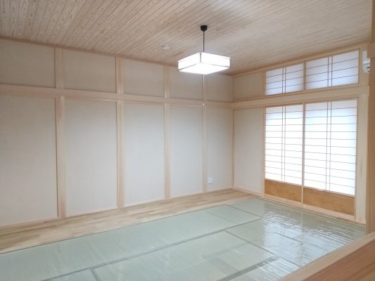 玄関~廊下、LDの壁には「土佐和紙」を採用されており、自然素材に拘られています。