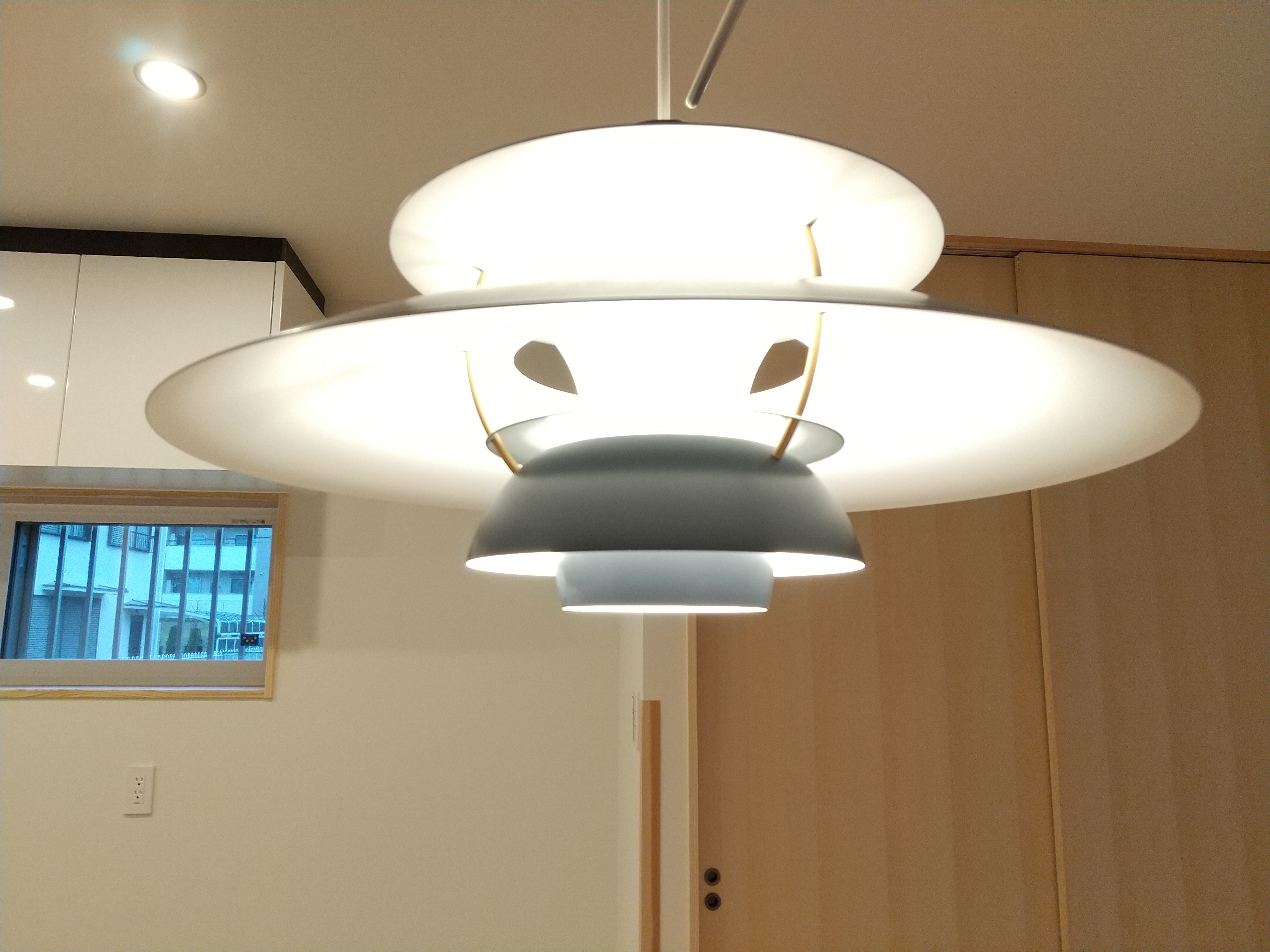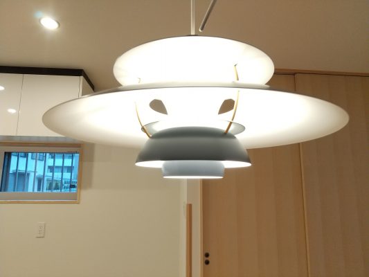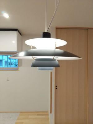 ダイニングテーブルの上には、カッコイイペンダントライト。 約60年以上前に作られたルイスポールセンのPH5です。いろんな角度から覗いてみましたが、あたり前ですがちゃんと光源が見えにくい造りになっています。洗練されたデザインと機能を合わせ持つ作品は、永遠の名作なんですね。