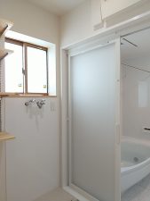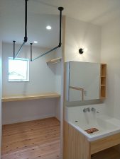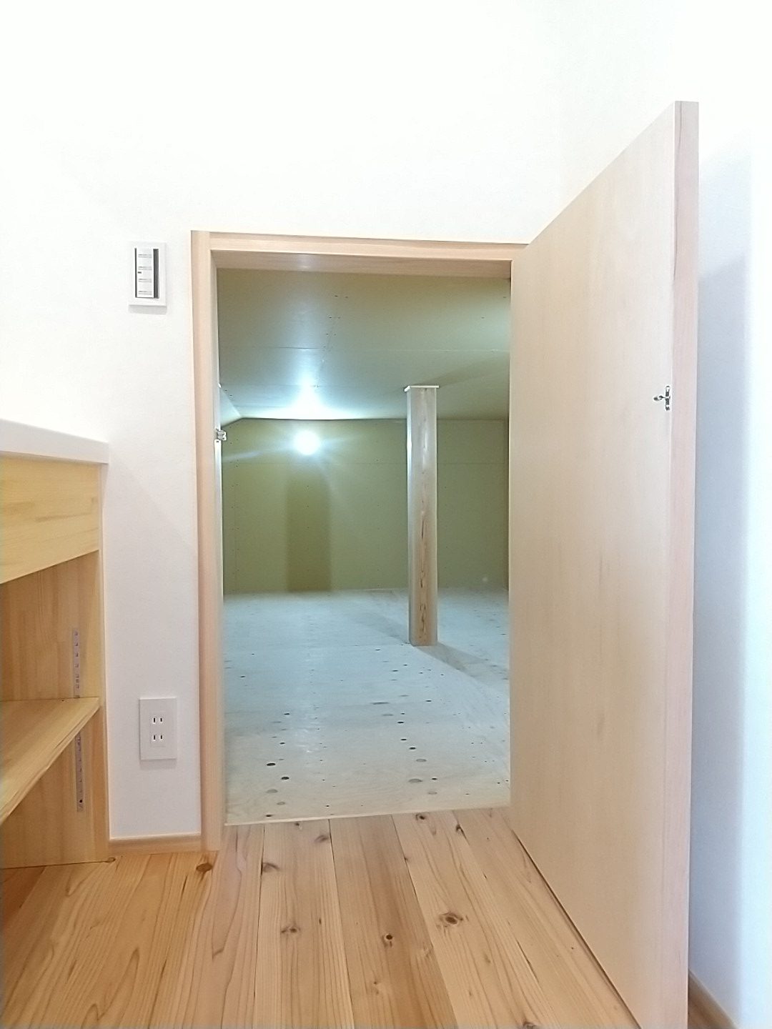 洗面、ランドリースペース横にも、小屋裏収納を設けて、小屋裏空間を余すことなく利用されています👍なので、屋根断熱なんですね~