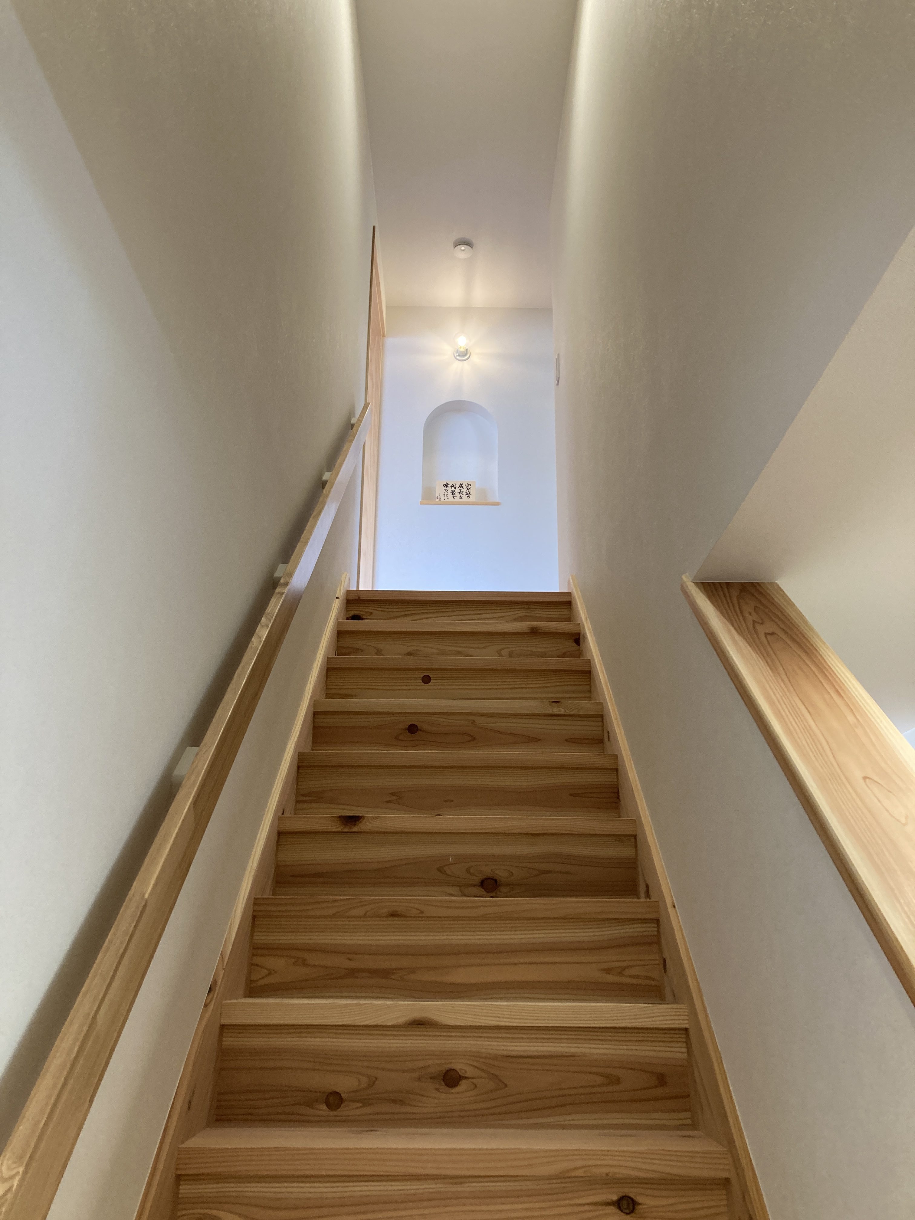 脱衣室近くに階段があり、2階は左手にLDK、右手が個室になっています。
