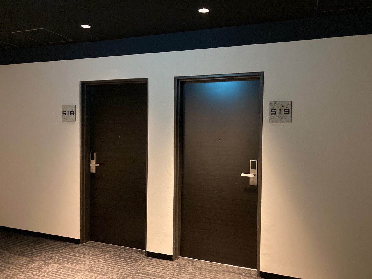 社長に押えてもらっていたビジネスホテルにチェックイン。何やらラグジュアリーな雰囲気漂う内装です。廊下の一角にギャラリーがあったり、各階に珈琲ラウンジがあったりと、普段携わっている住宅設計、工事とはまた違った動線計画や収まり、材質感を見る事ができます。すぐにその辺に目が行ってしまうあたりもはや職業病ですな。