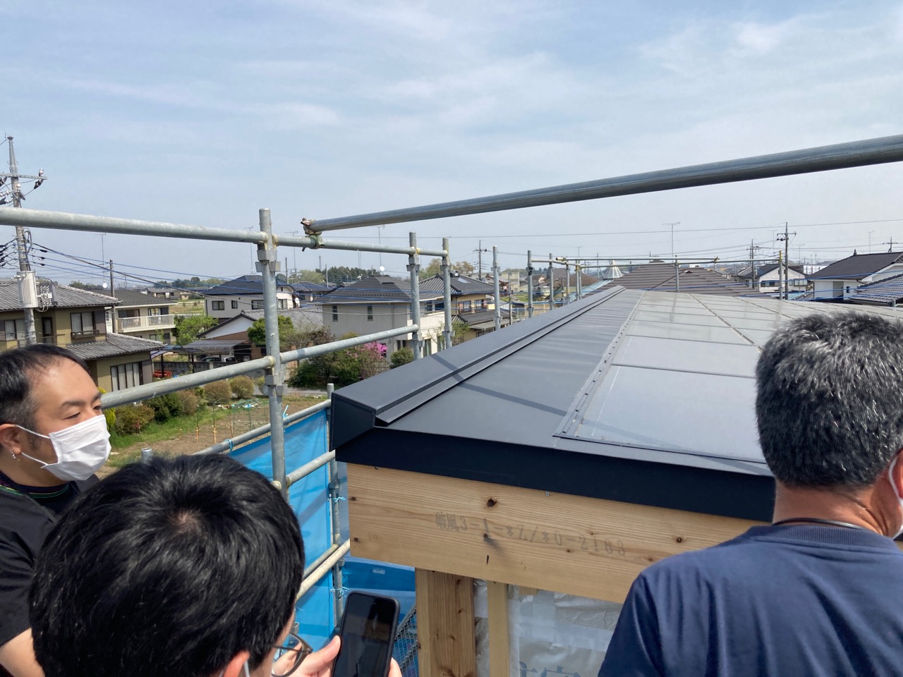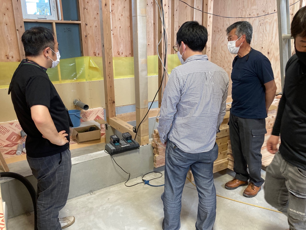現在営業中のお客様で、温熱環境や設備機器に大変関心の高い方がおられ、換気設備等も含め計画を依頼された設計事務所が栃木県宇都宮市にあります。今回はその設計士さんに施工中の現場を見せていただけることになり、押っ取り刀で高速を飛ばして宇都宮市まで社長、w辺棟梁、監督s水と一緒にお邪魔しました。