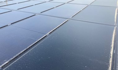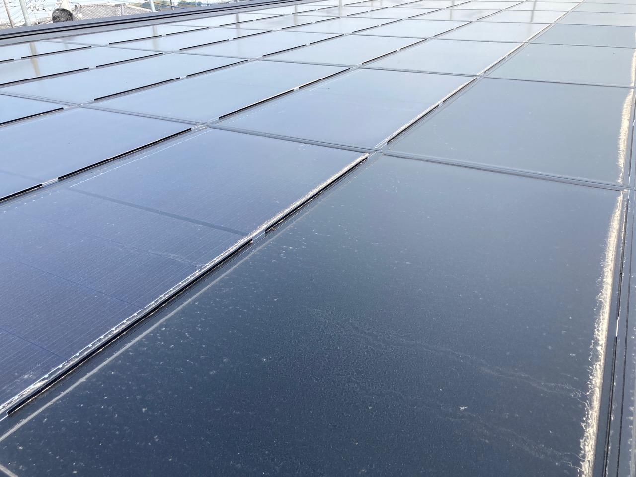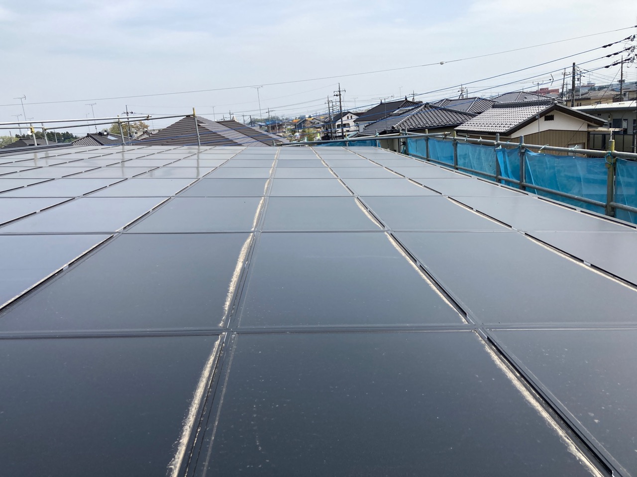 屋根は太陽光発電一体のエコテクノルーフ。施工にはメーカーの講習を受講する事が必要ですが、約1日で屋根工事と太陽光工事が終わるスグレモノです。
