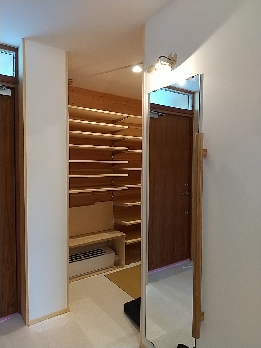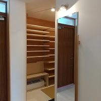 玄関を入ると左手に、広めのシューズクローク3帖に床下エアコンも設置されています。