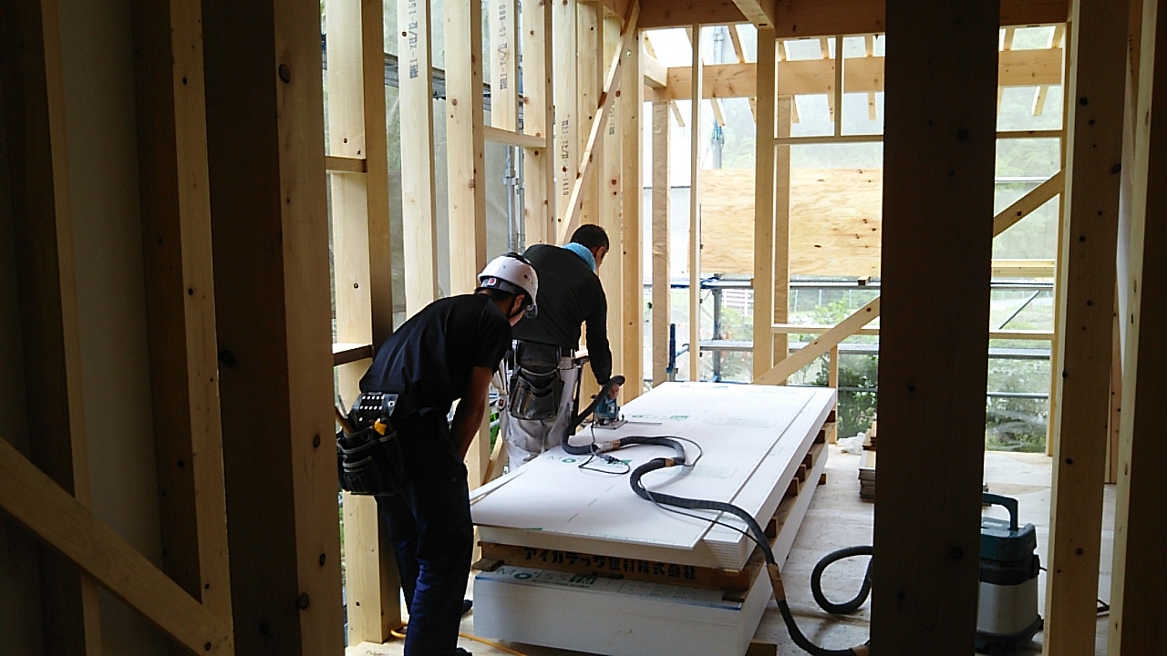 4月に入社しました新弟子が新築現場デビューしました。といってもまだまだ親方の後ろについて見て覚える、解らないことは聞いて覚えるの段階です。昔から『技術は盗め』と言いますが、彼にも親方の技術をどんどん盗んで覚えて行ってもらいたいと思います。くれぐれも張り切りすぎて怪我をしないように。