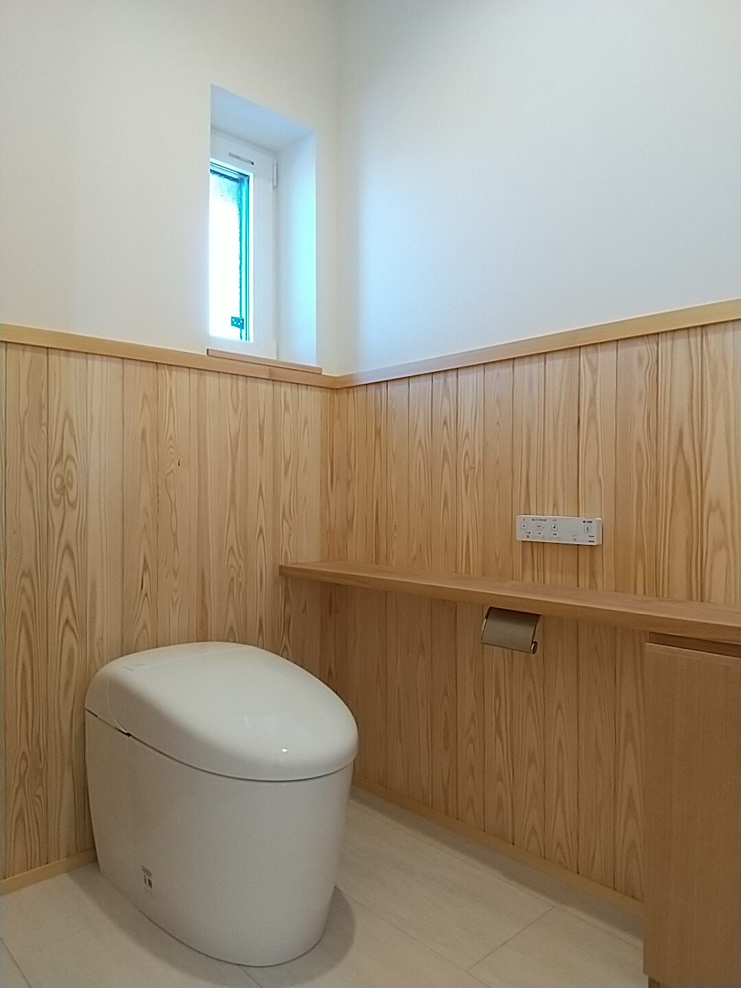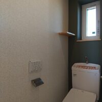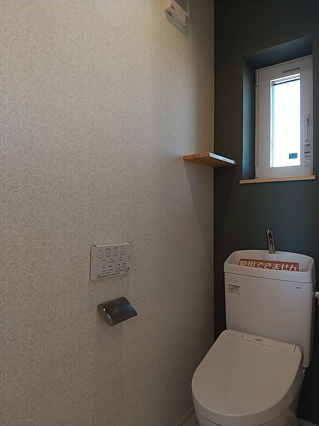 2階には寝室と書斎、トイレ、洗面があります。トイレは、建て替える少し前に取り換えられたばかりの物を再利用。勿体ない精神大切👍ご主人が気に入られたクロスに合わせて、営業のkがクッキリした色を提案しました。空間がしまっていい雰囲気になったと思います。k様いかがでしょうか?