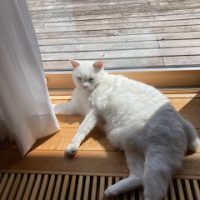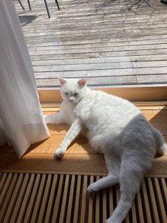 我が家の猫は、一番暖かな場所を見つけるのが得意。吹き出し口の上で、しかも日当たりの良い場所で、寒そうな外の景色を眺めています。時には、猫に代わりたい気分です