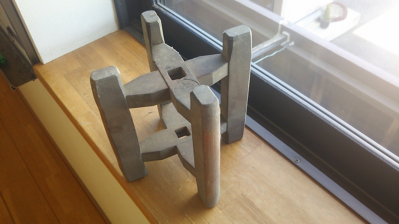 さる解体現場の古い作業場から見つけてきました。古い糸巻きか何かの道具でしょうか。