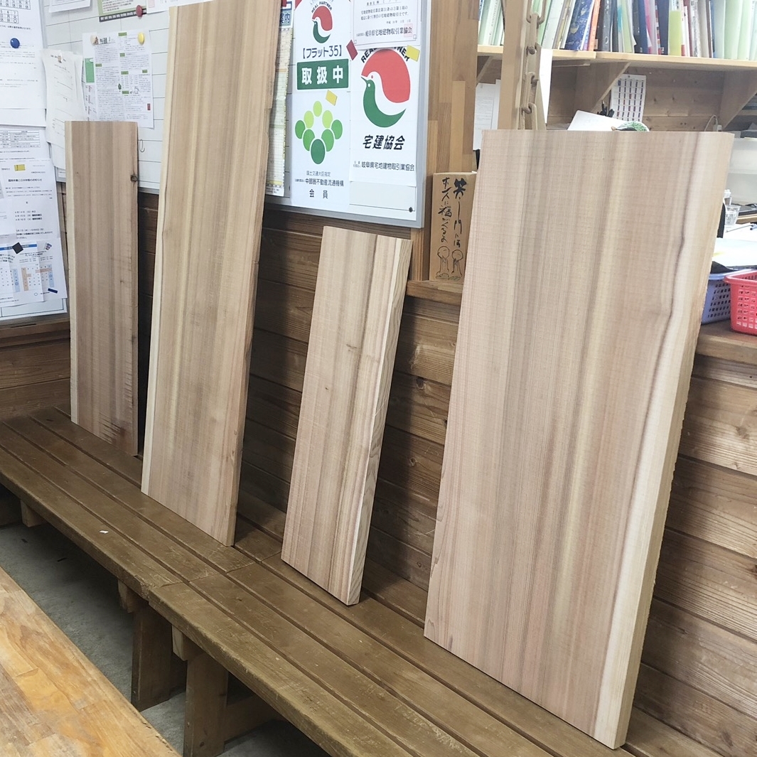 この正体は、お茶室の水屋の材料の杉板。現在施工中の現場で使う材料なのですが、今は事務所内で乾燥中です。