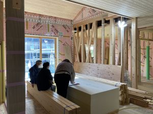 土曜日は12月とは思えないほど暖かい陽気で、日曜日は一変して雪の様なものがチラつく寒~いお天気でした。日曜日は更にビュービューと鳴るくらいの強い風💦けれど、付加断熱55㎜、樹脂サッシのt様邸は、家の中に入るとまったく音は聞こえず、まだ施工中にも関わらず暖かい室内👍で皆さんビックリされていました。『驚き、桃ノ木、ミノワの木の家』ですね(笑)