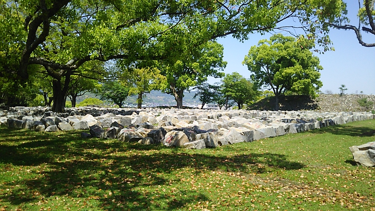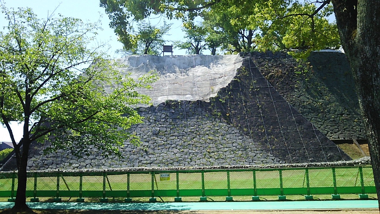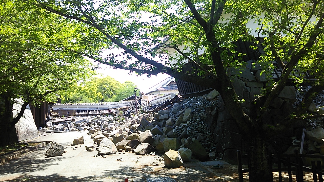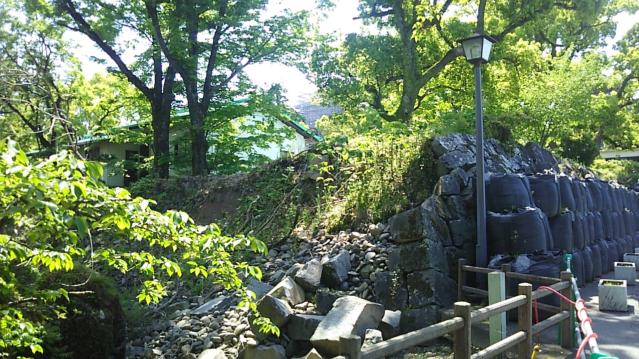 一部石垣などは地震当時のままとなっており、修繕もさることながら、瓦礫の撤去や整理もままならないようです。元々が整然と並んでぴたりと納まっていた石なので、単純にもう一度積み上げれば、というものでもありません。崩壊した石垣の隙間から生える雑草に何とももの悲しさを感じます。