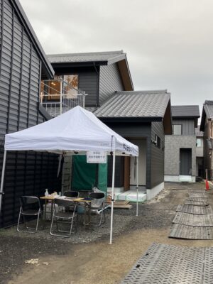今回の土日に、見学会を開催いたしました。時折小雨が降る曇り空の2日間でしたが、窓を開ければちょうど良い気温。エアコンが間に合わなかったので、助かりました。ご来場いただきました皆様、駐車場の用意が無い上、足元が悪い中、ありがとうございました。