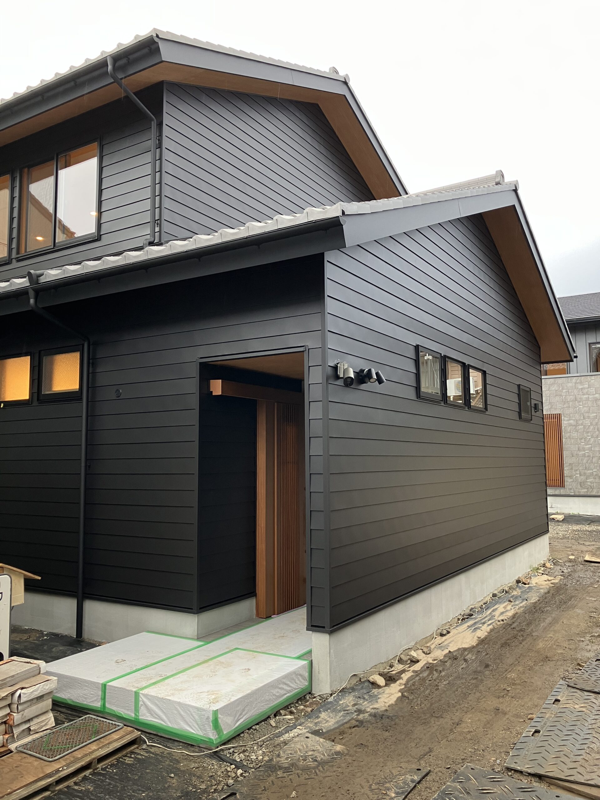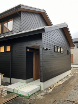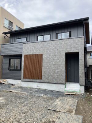 あら~制御性T細胞で持病が治るかも!と希望を持ったのも束の間、自公連立解消など政治のゴタゴタで遅れている物価高対策、これからの日本は一体どうなるのか、天気と一緒で雲行きが怪しくモヤモヤしていたら、見学会を見逃してしまったわ~と言う方に、少しo様邸の紹介をいたします。昔旅館をしていた旧家を数年前に取り壊され、住宅のご新築と、離れを建てられました。敷地面積140.11坪、細長い敷地の一番奥に、1階24.44坪、2階19.81坪、合計44.25坪の母屋、その手前に町並みに配慮し車が見えない様に駐車スペースを確保されています。またその前に1階21.75坪、2階14坪、合計35.75坪の離れを建てられ、現在、入り口には門を建築中です。